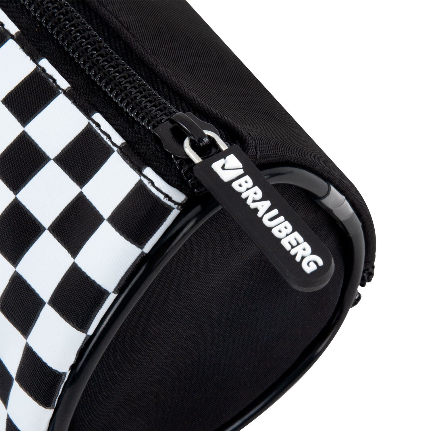 Пенал мягкий BRAUBERG, 3 отделения, нейлон, 21х7х7 см, Black&white, 273582
