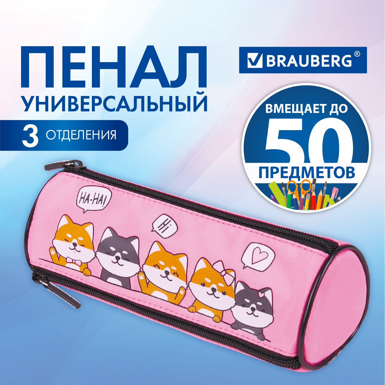 Пенал мягкий BRAUBERG, 3 отделения, нейлон, 21х7х7 см, "Puppies", 270839