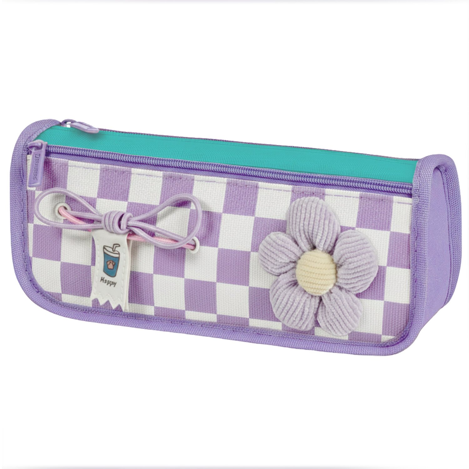 Пенал мягкий BRAUBERG KIDS, 2 отделения, полиэстер, "Checked flower", 22x10x6 см, 274581