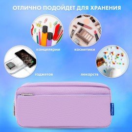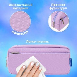 Пенал мягкий BRAUBERG PASTEL, 2 отделения, фиолетовый, 21х9,5х5 см, 272278
