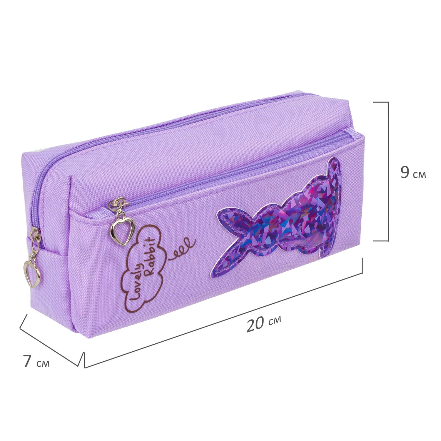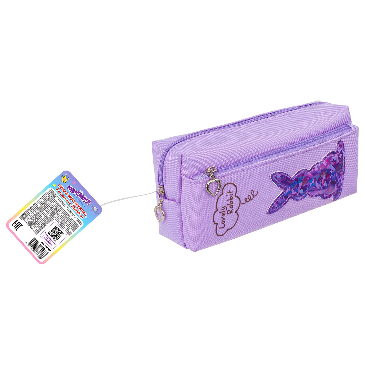 Пенал мягкий ЮНЛАНДИЯ, 2 отделения, полиэстер, "Bunny", фиолетовый, 20х7х9 см, 228989