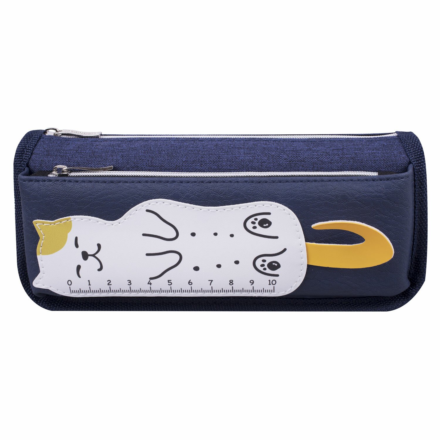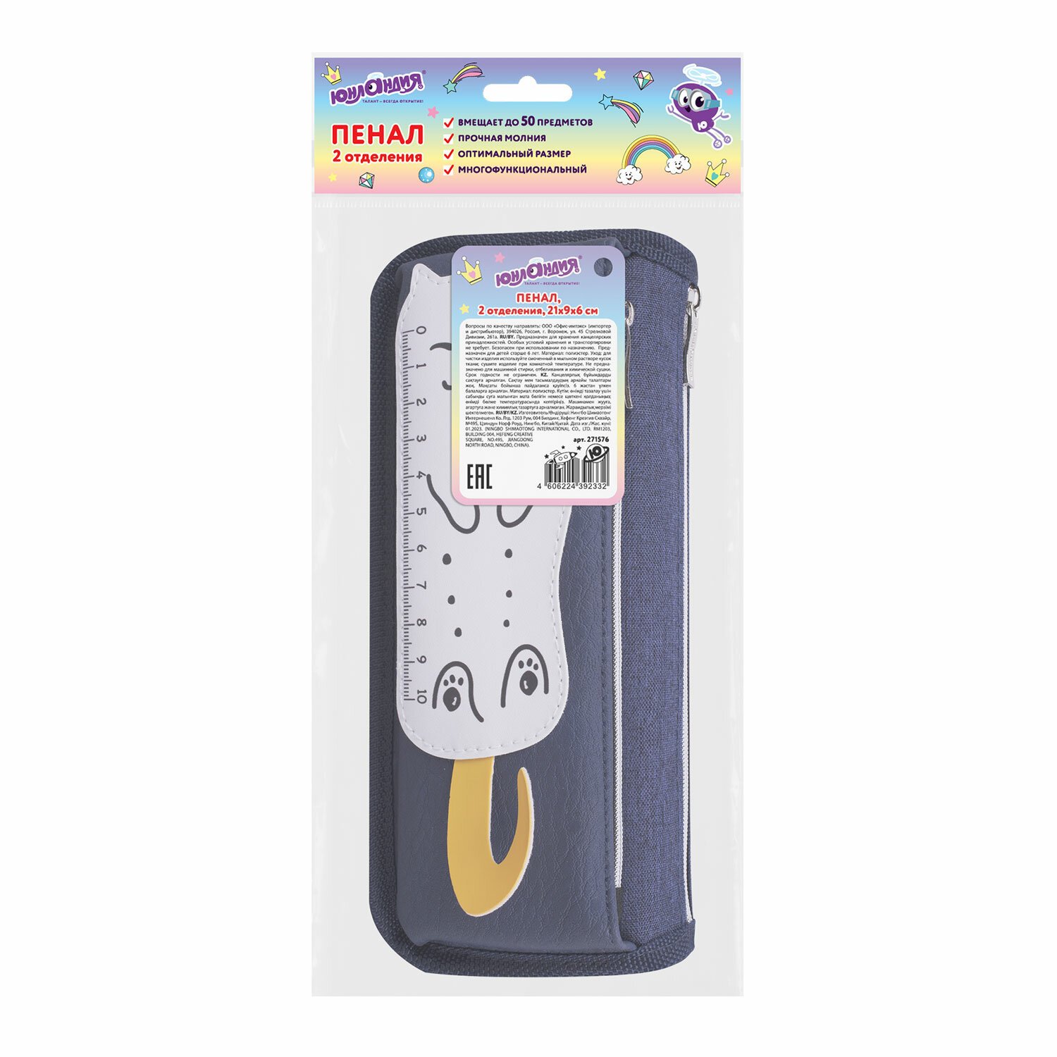 Пенал мягкий ЮНЛАНДИЯ, 2 отделения, полиэстер, "Cats rule", синий, 21х9х6 см, 271576