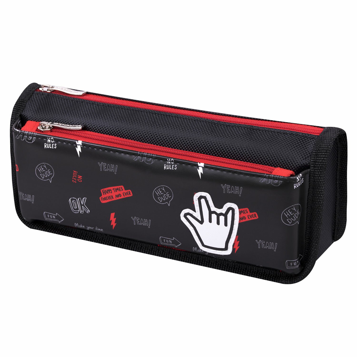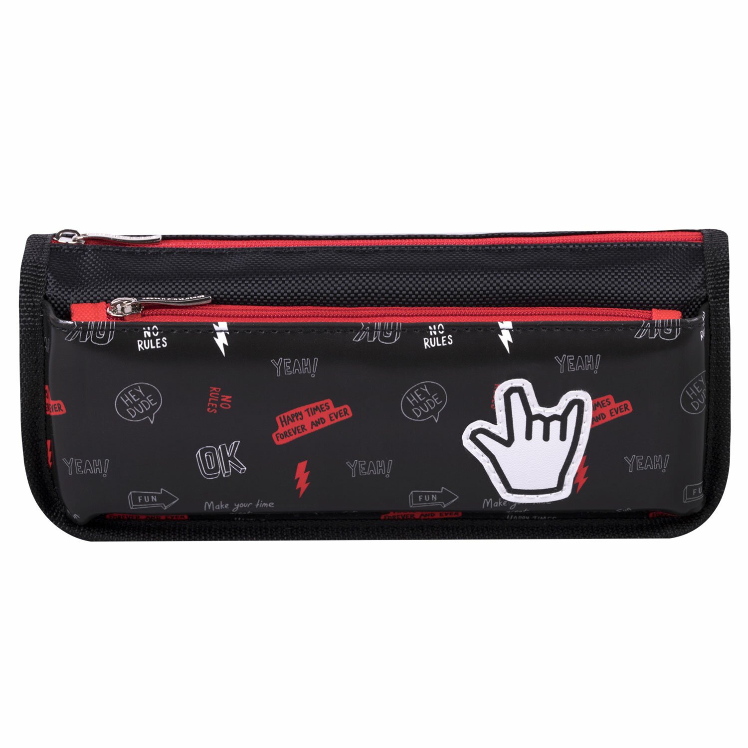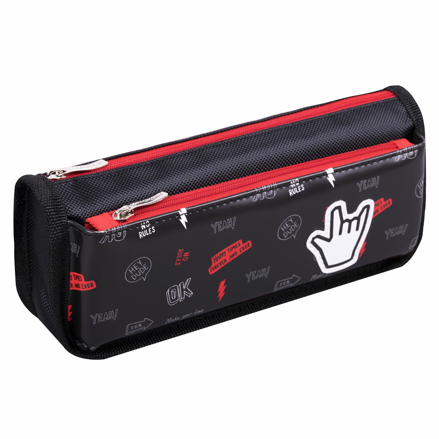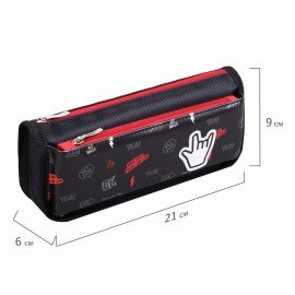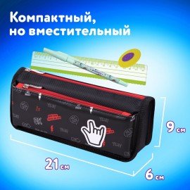 Пенал мягкий ЮНЛАНДИЯ, 2 отделения, полиэстер, "Cool vibes", черный, 21х9х6 см, 271573