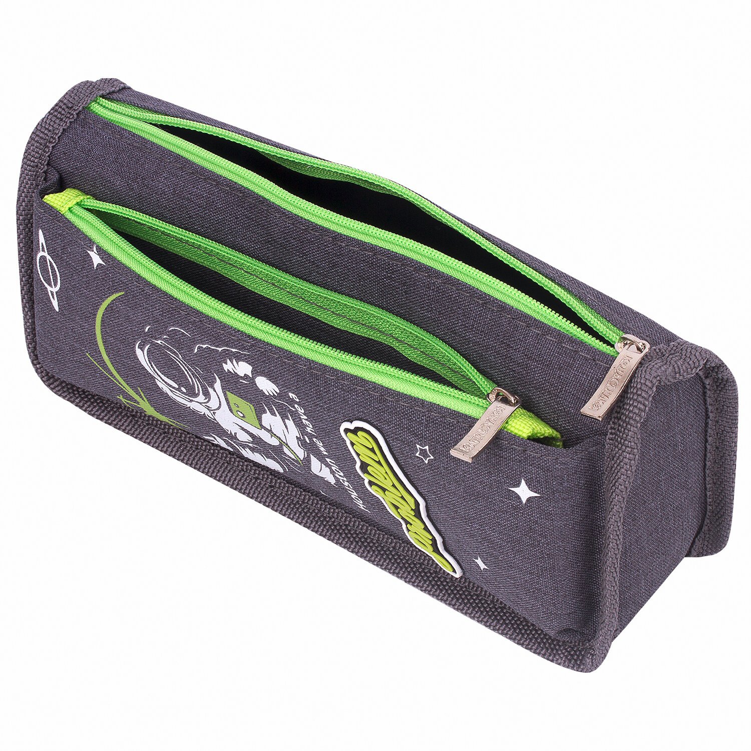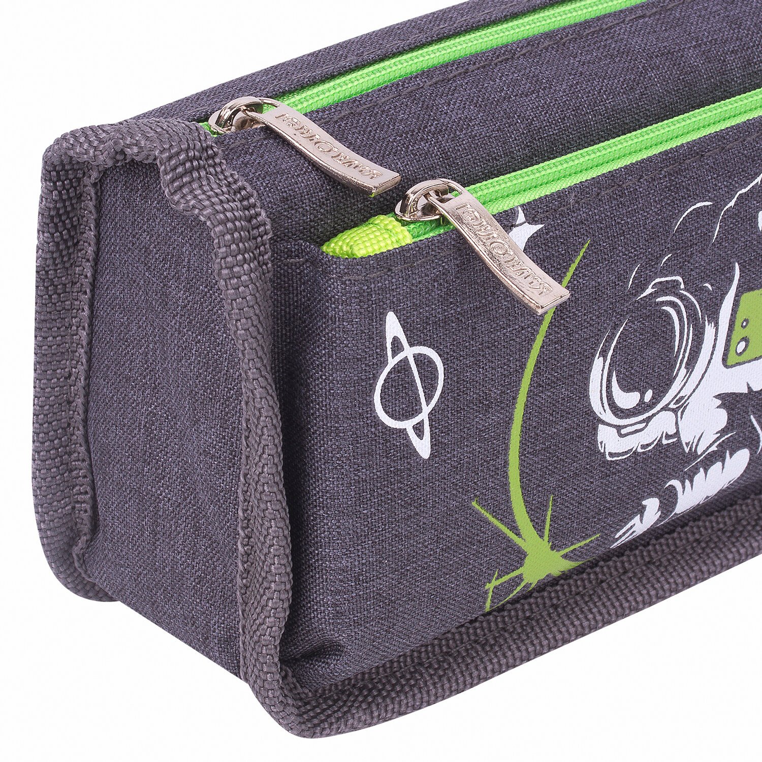 Пенал мягкий ЮНЛАНДИЯ, 2 отделения, полиэстер, "Cosmonaut", серый, 21х6х9 см, 270275