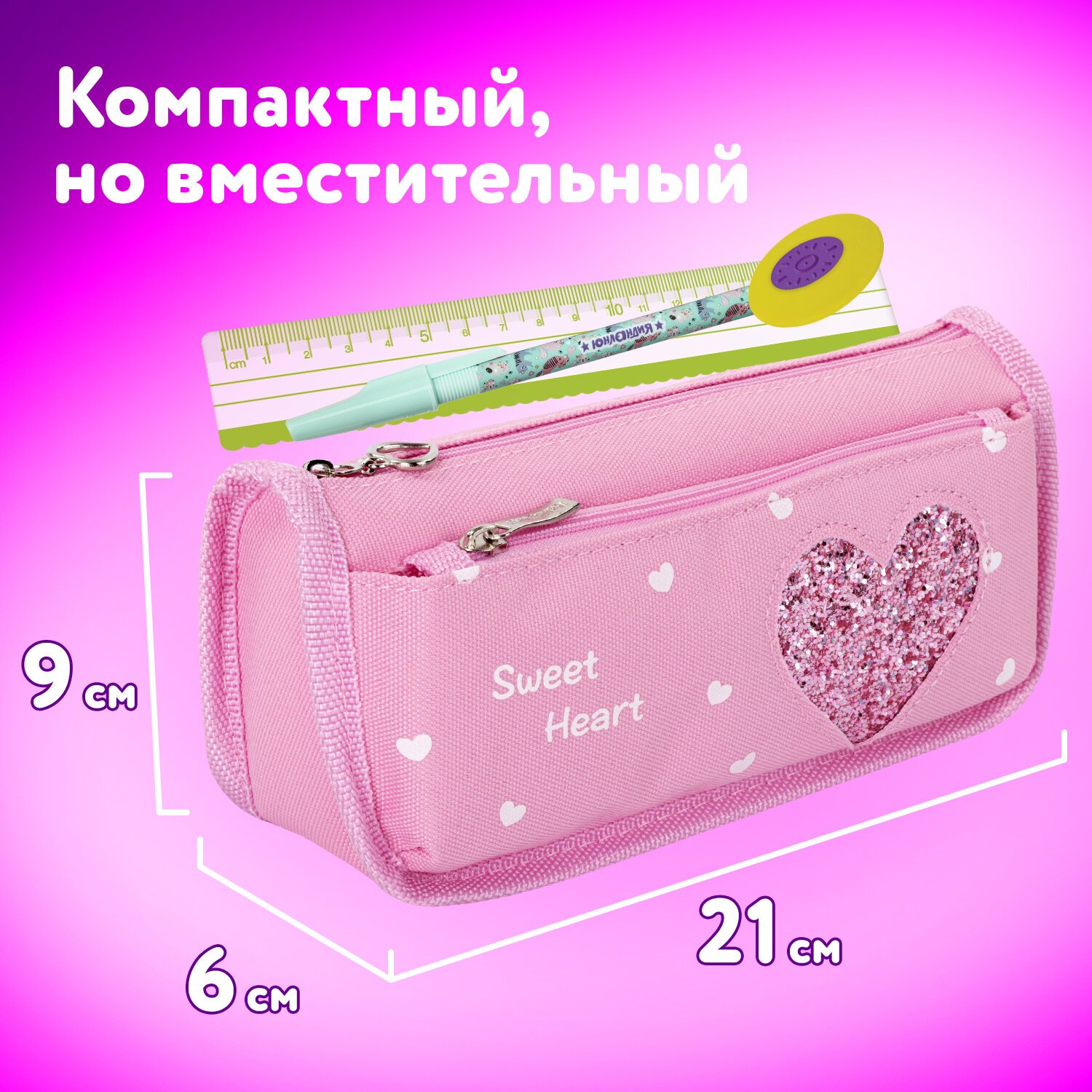 Пенал-косметичка ЮНЛАНДИЯ "Heart" предназначен для хранения школьных принадлежностей, вмещает до 50 канцелярских предметов стандартного размера. Удобный и вместительный пенал не займет много места в школьном ранце или рюкзаке.