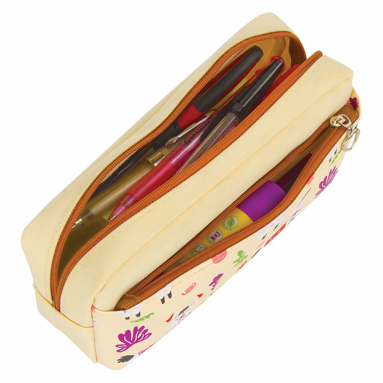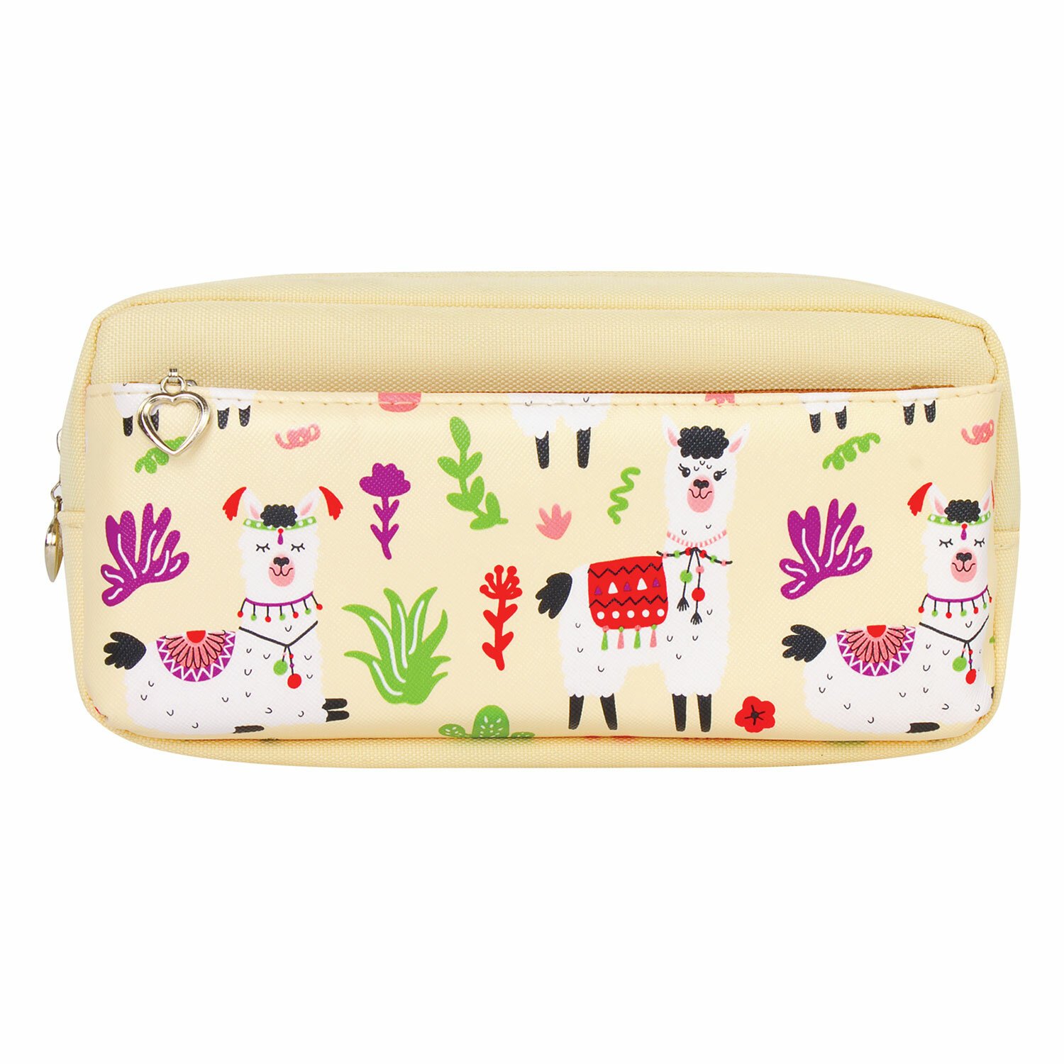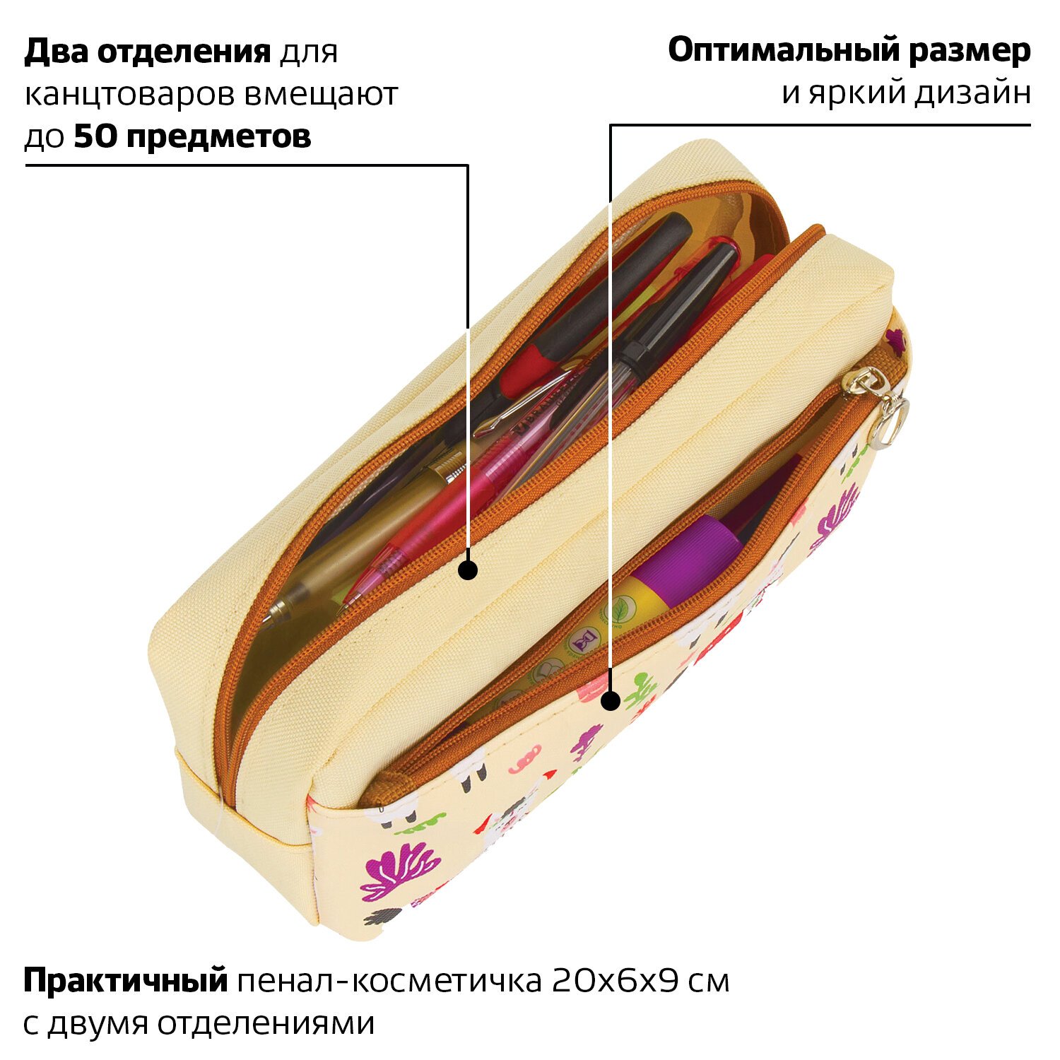 Пенал мягкий ЮНЛАНДИЯ, 2 отделения, полиэстер, "Llama", бежевый, 20х6х9 см, 228981