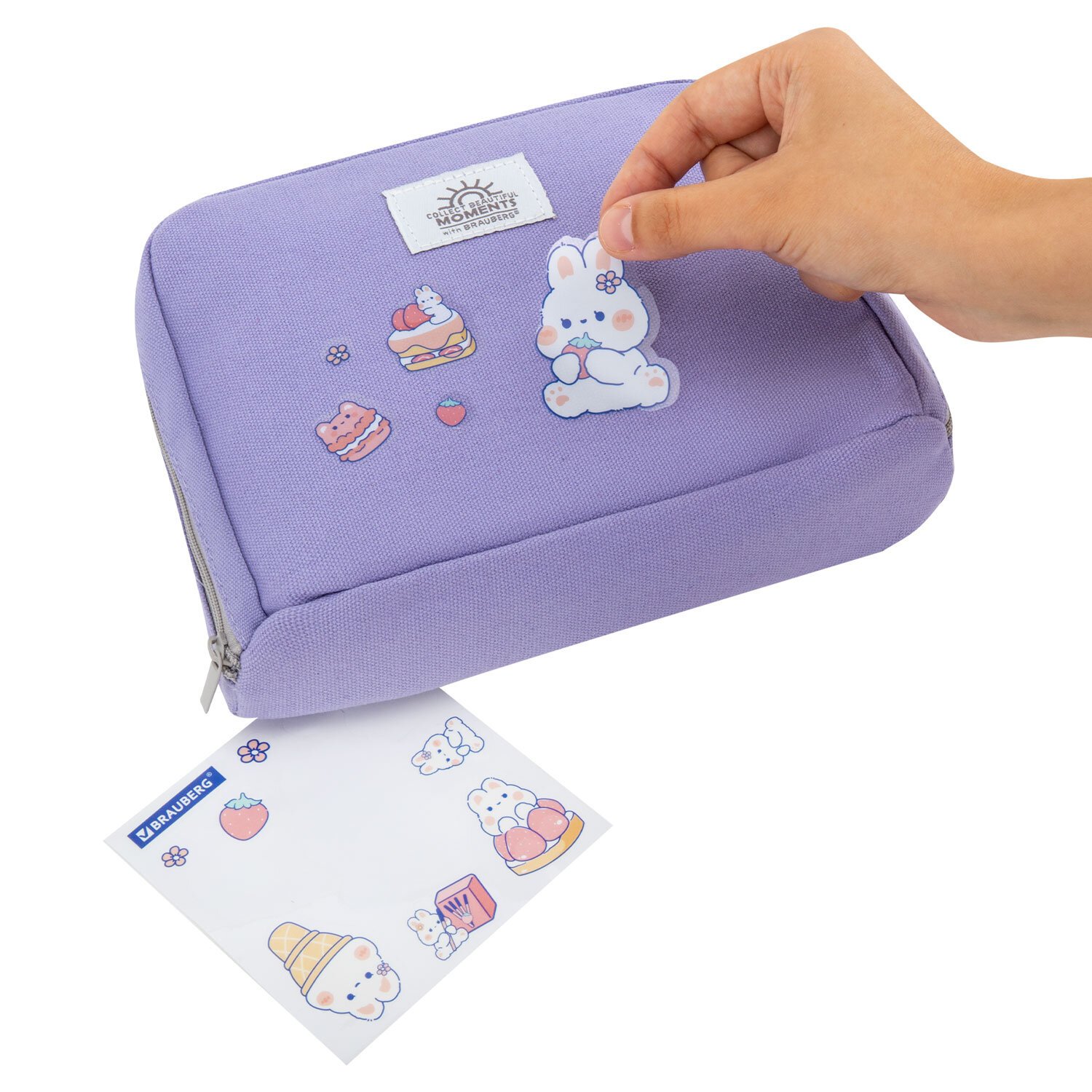 Пенал BRAUBERG MOMENTS имеет одно вместительное отделение с 9 карманами, что позволяет разместить до 100 предметов. Застежка-молния, расположенная вокруг, обеспечивает удобный доступ к содержимому. Пенал имеет оптимальный размер для размещения в нем не только канцелярских принадлежностей и принадлежностей для творчества, но и повседневных мелочей, аксессуаров, таким образом может выполнять роль универсального несессера, который можно всегда взять с собой. Внутри пенала уникальный сет наклеек, с помощью которых можно украсить как сам пенал, так и другие личные вещи.