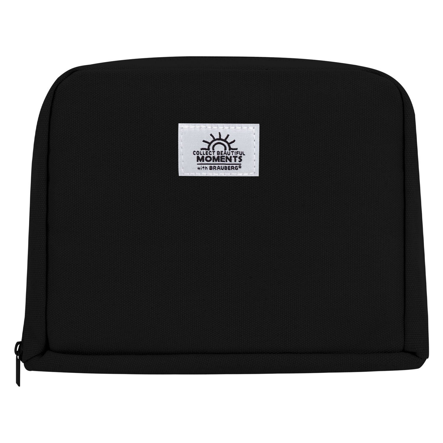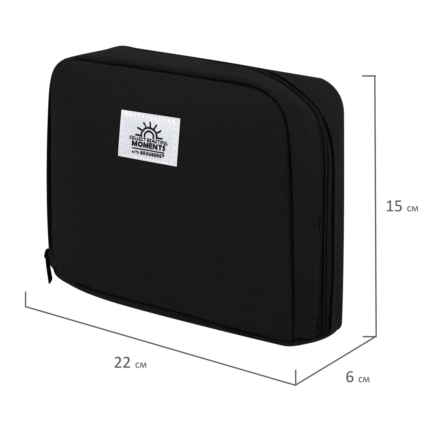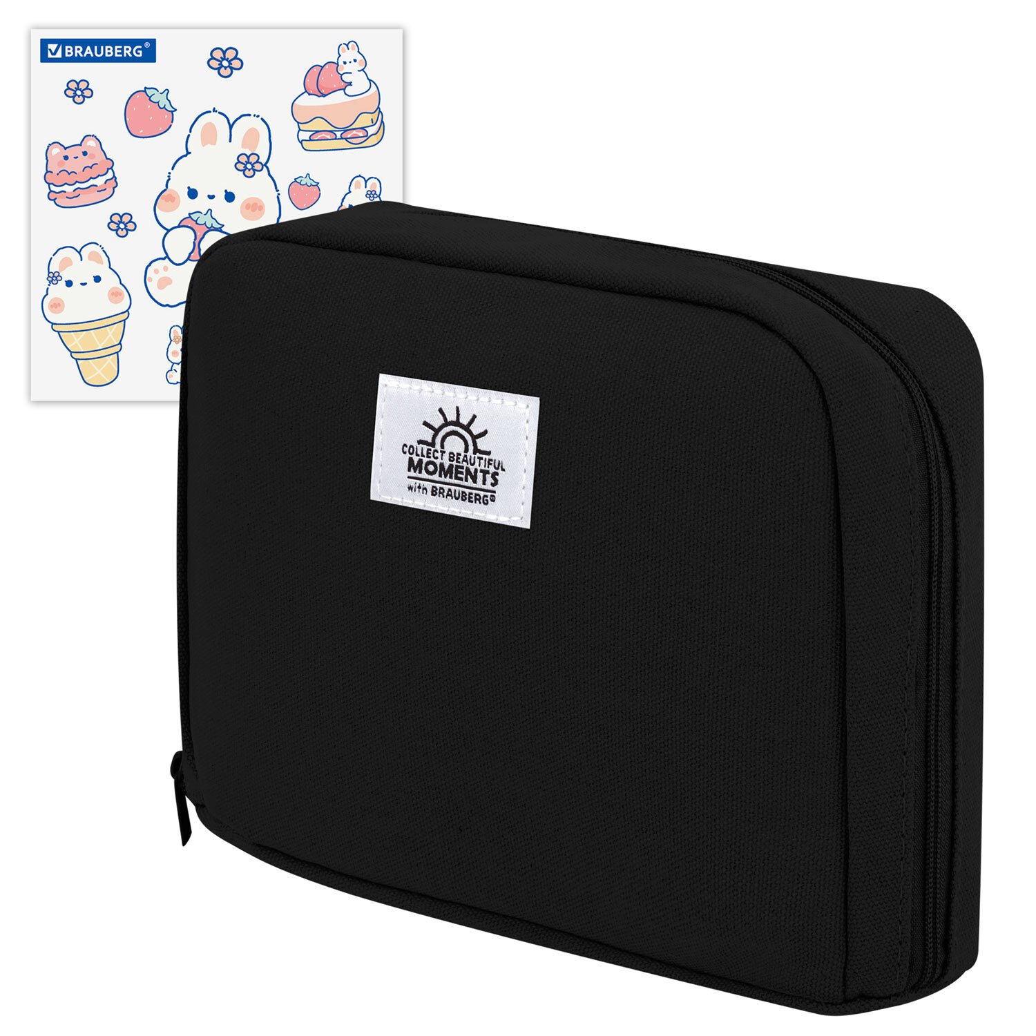 Пенал-органайзер BRAUBERG, 1 отделение, наклейки, молния вокруг, канвас, 22x15х4 см, черный, 273594