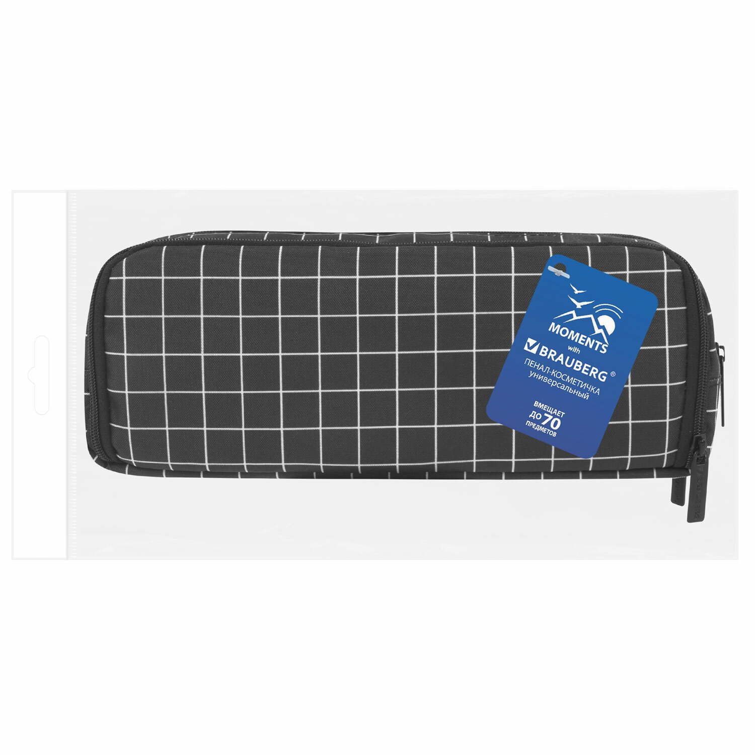 Пенал-косметичка BRAUBERG с ручкой, 1 откидная планка, полиэстер, 22x10х8 см, Black, 272339