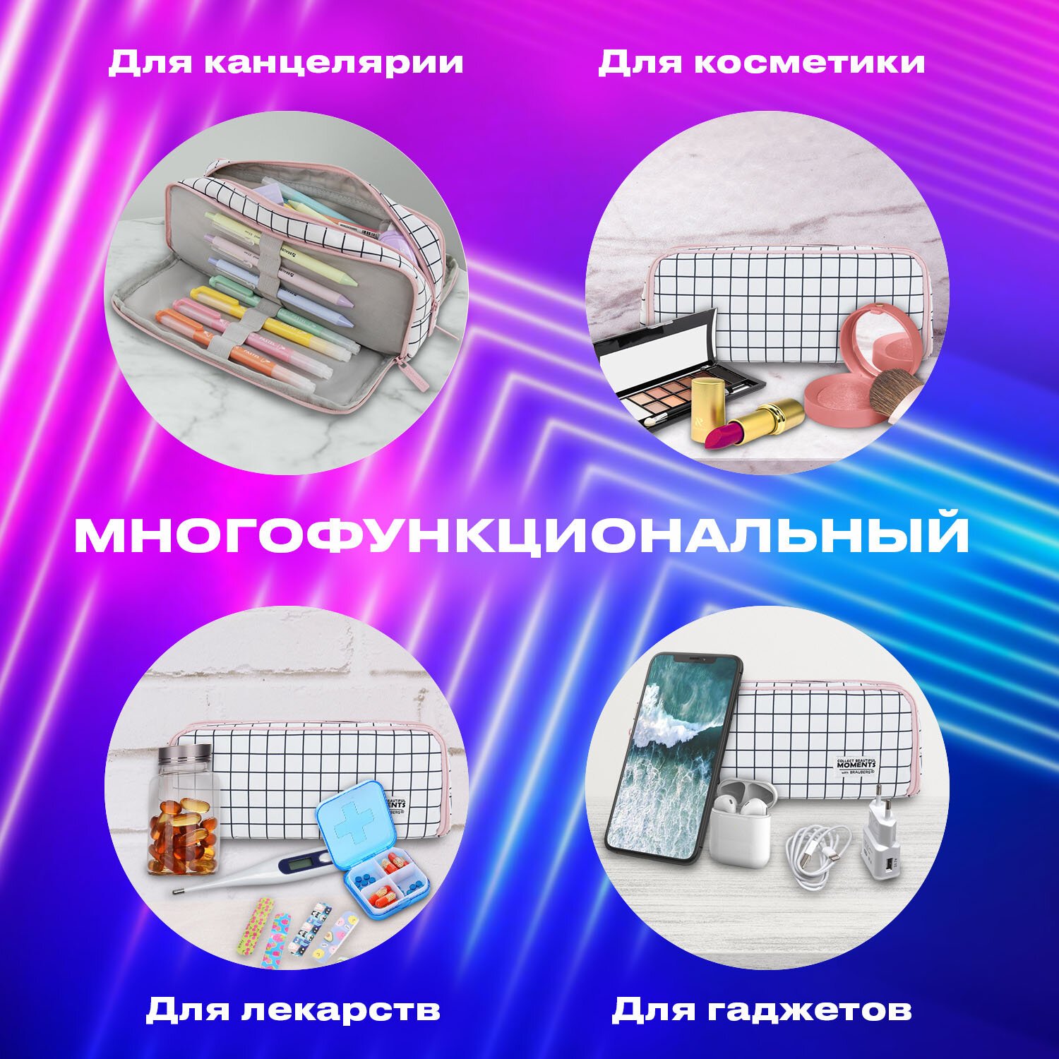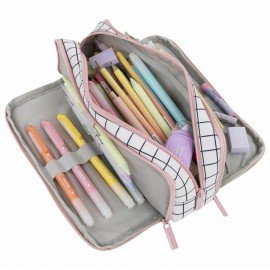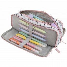 Пенал-органайзер BRAUBERG, 2 откидные планки, полиэстер, 23x9х7 см, "Checkered white", 272315