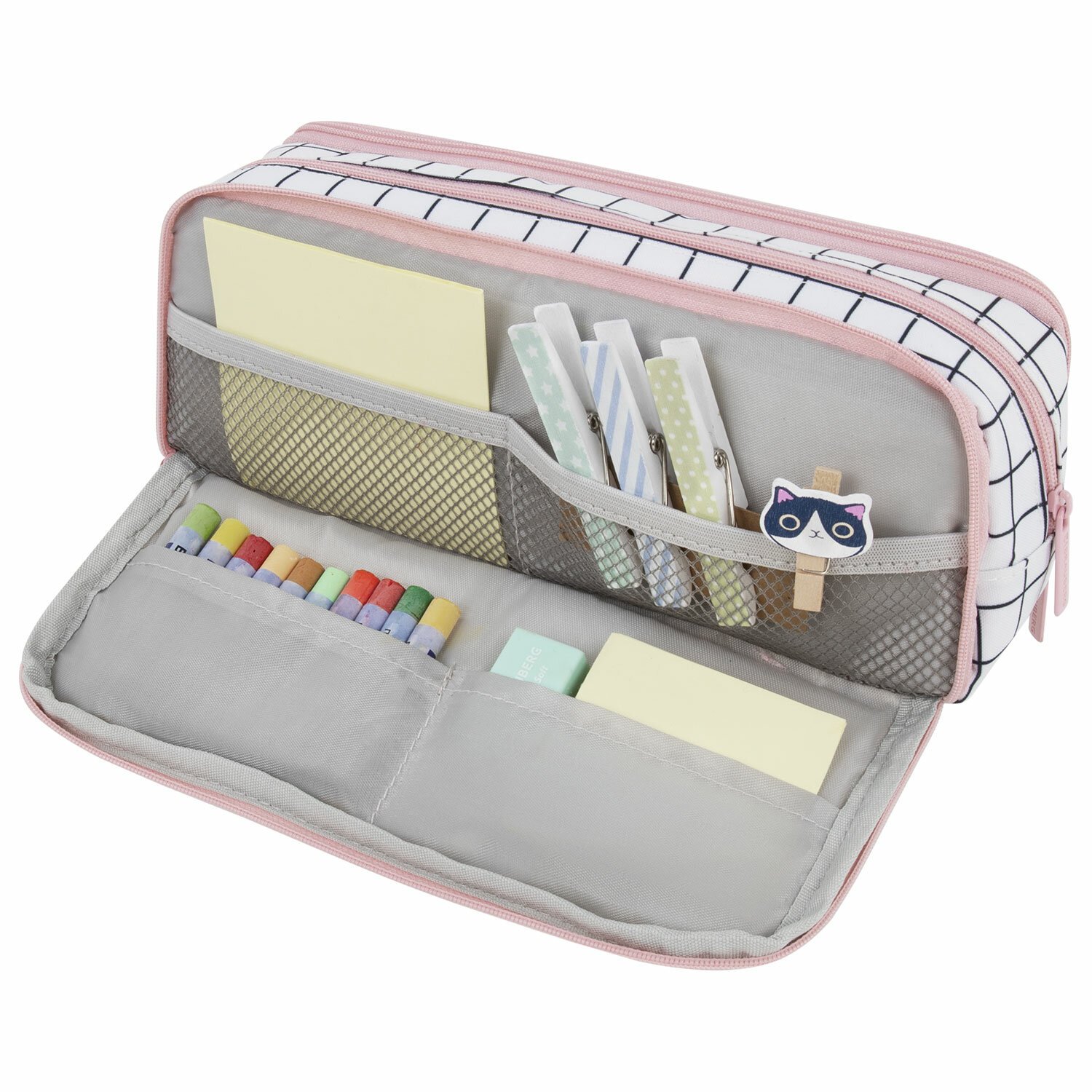 Пенал BRAUBERG MOMENTS имеет одно вместительное отделение с 2 боковыми откидными планками, что позволяет разместить до 70 предметов. Одна откидная планка имеет универсальный органайзер для крупной канцелярии, а вторая – компактные сетчатые карманы, чтобы разместить мелкие часто используемые принадлежности.