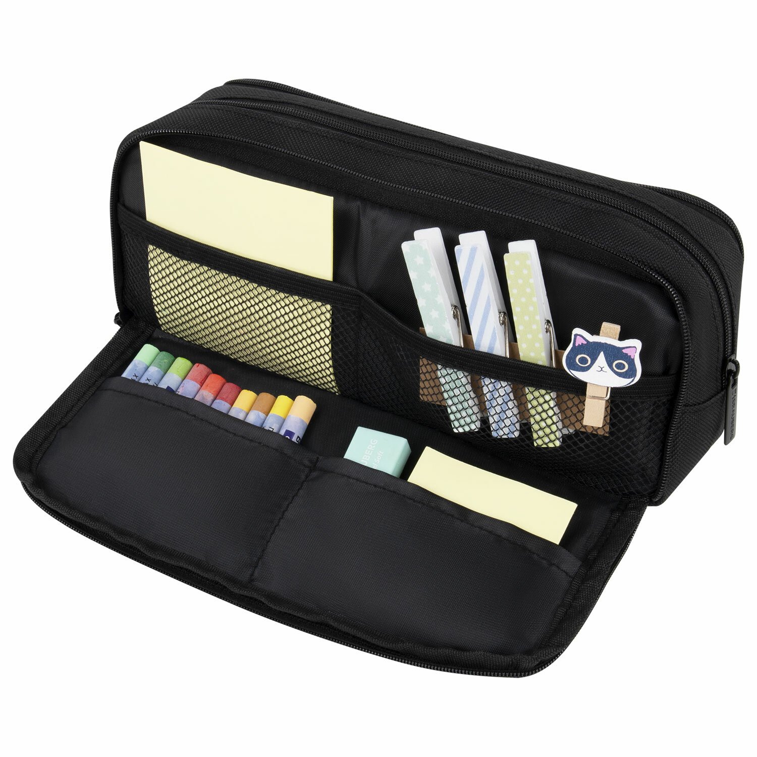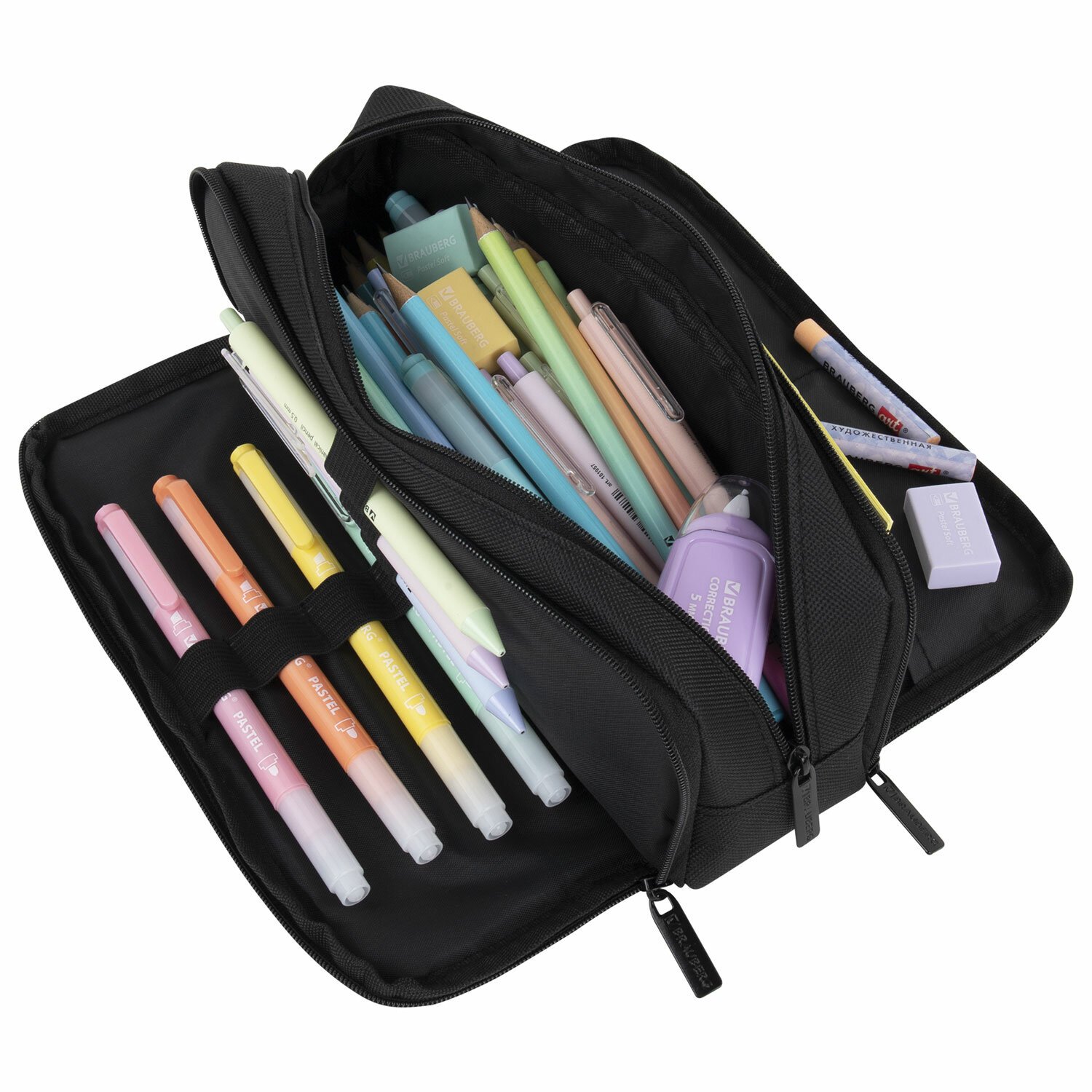 Пенал-органайзер BRAUBERG, 2 откидные планки, полиэстер, 23x9х7 см, "Total black", 272317
