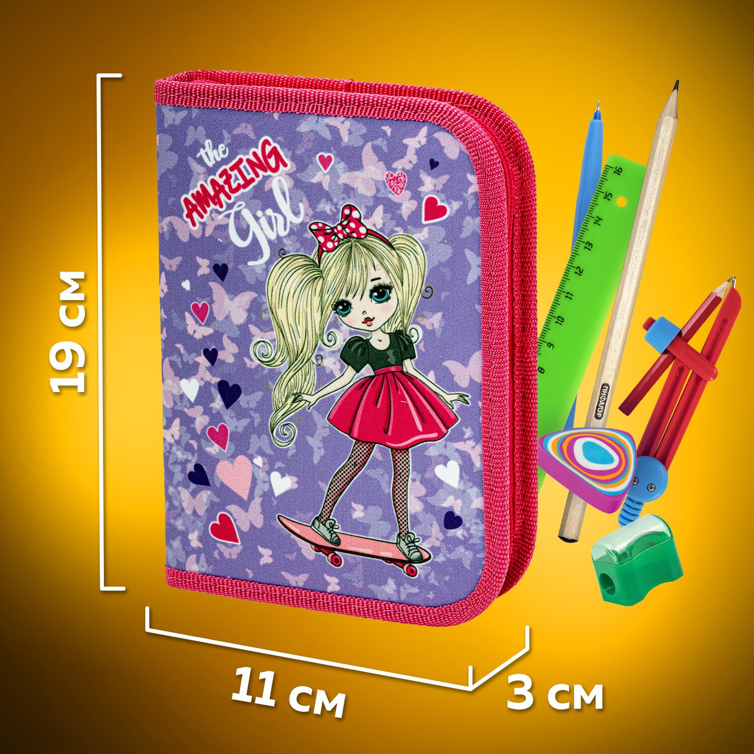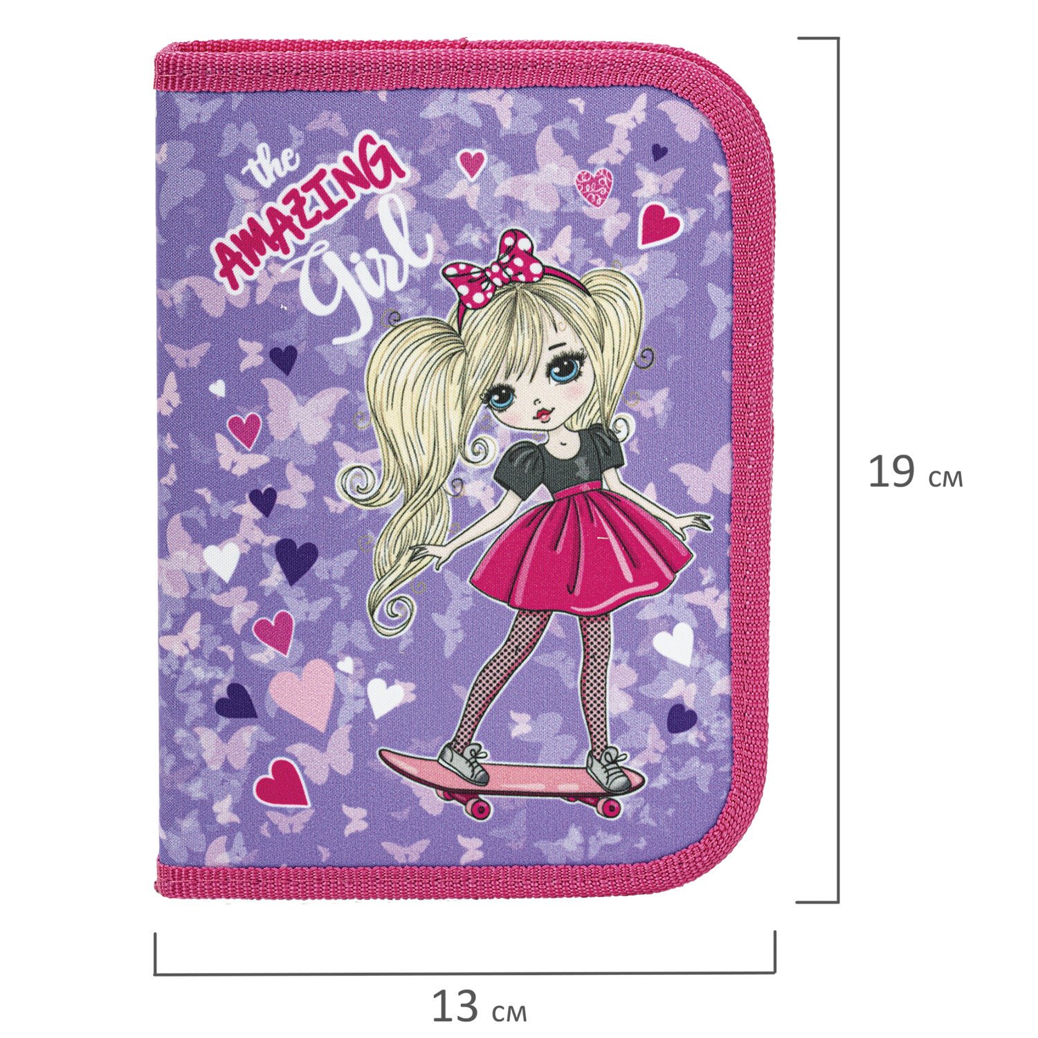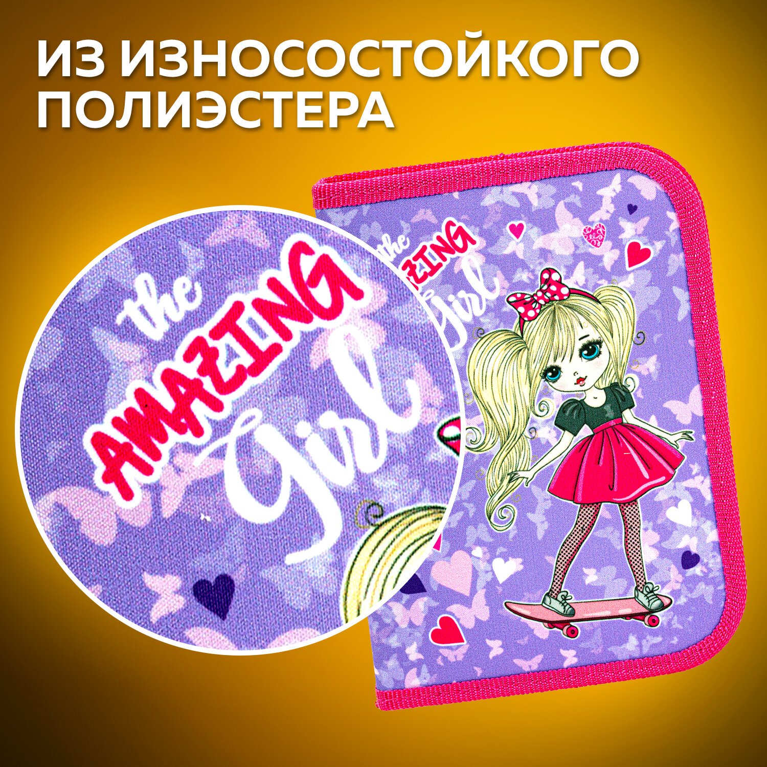 Пенал ПИФАГОР, 1 отделение 1 откидная планка, полиэстер, 19х13 см, "Amazing Girl", 271518
