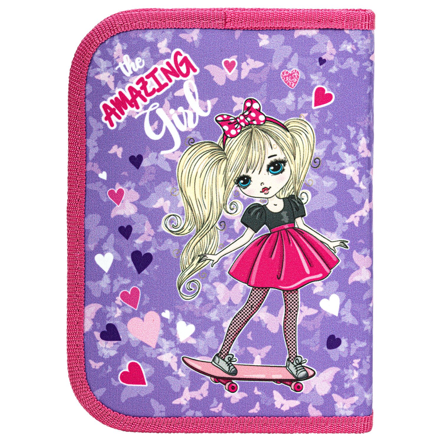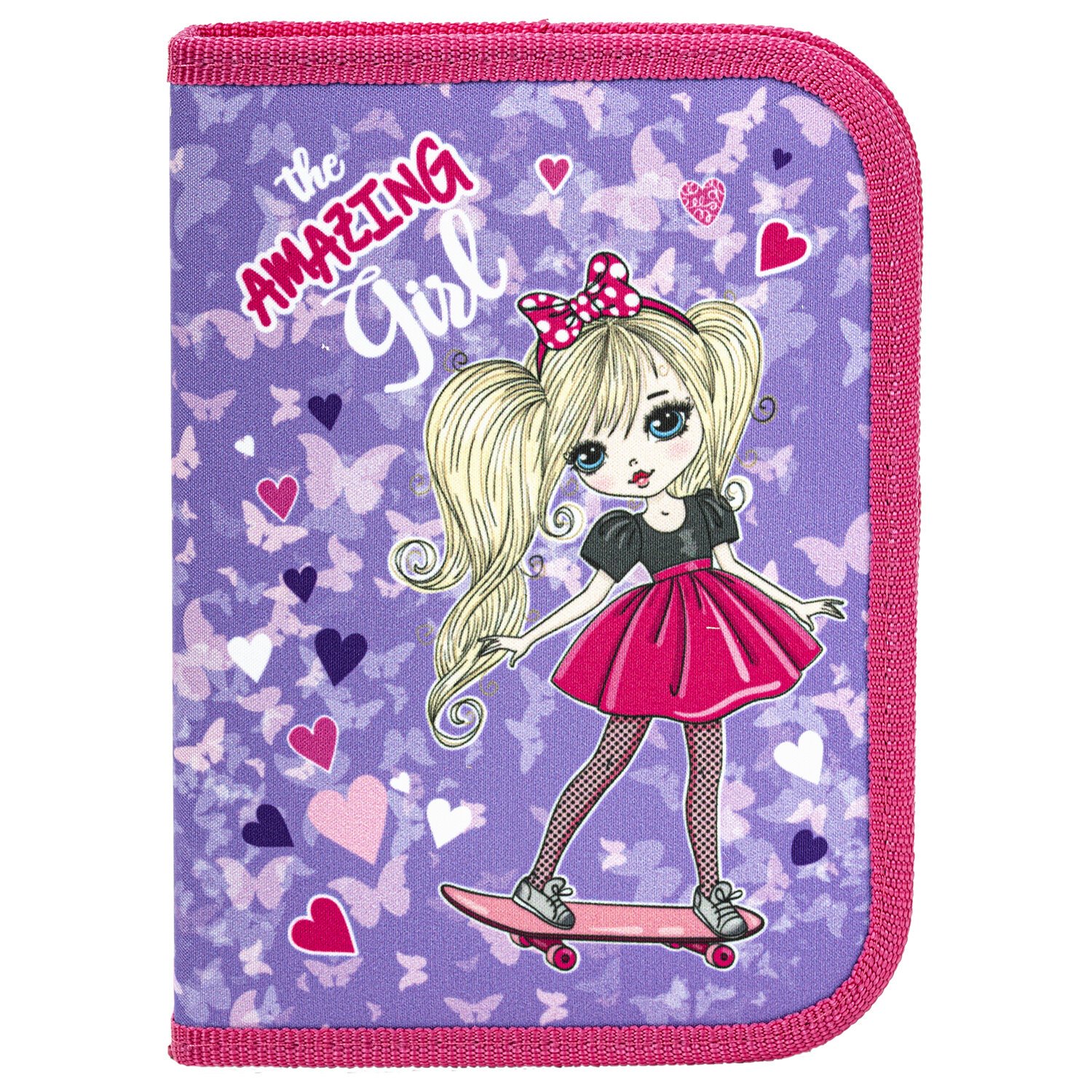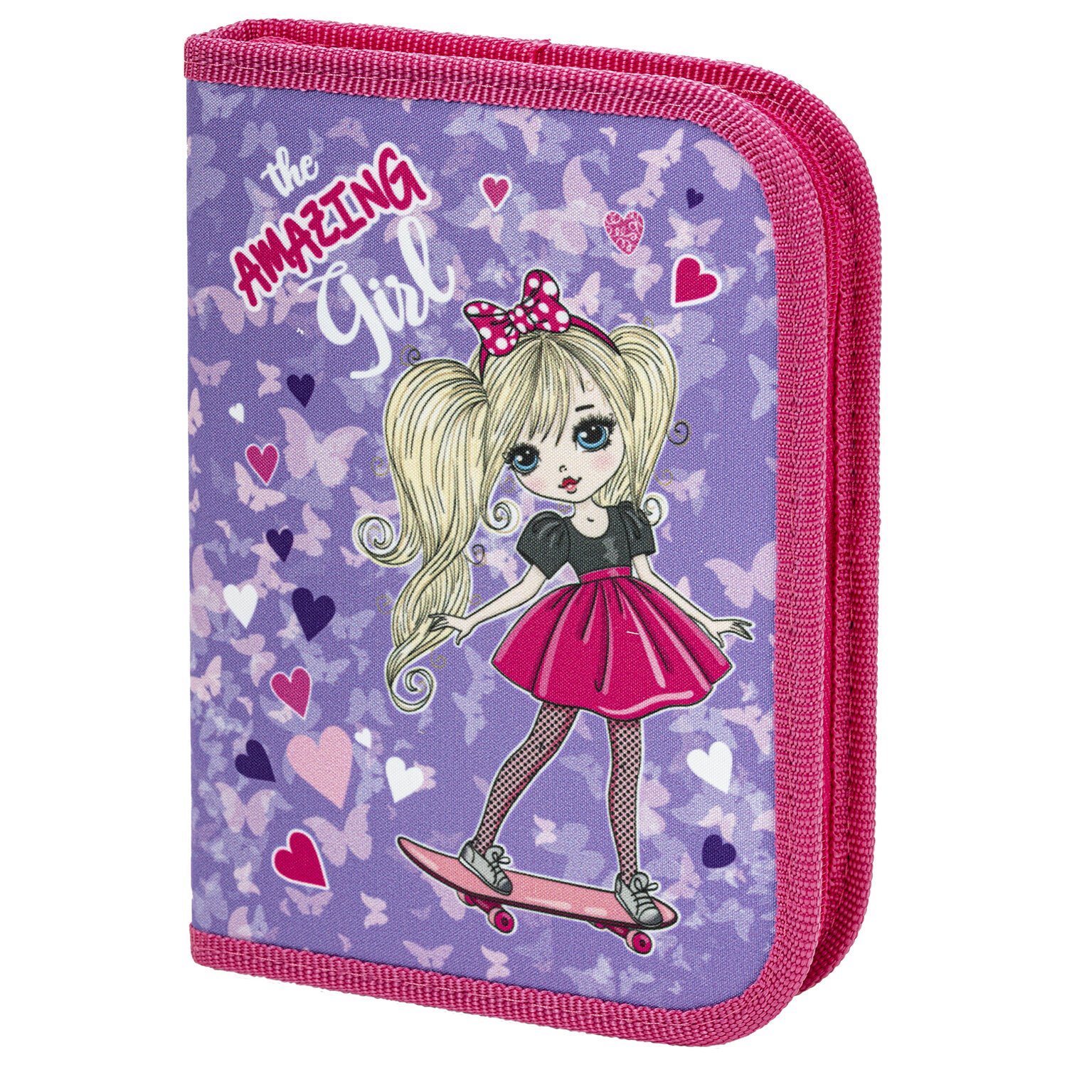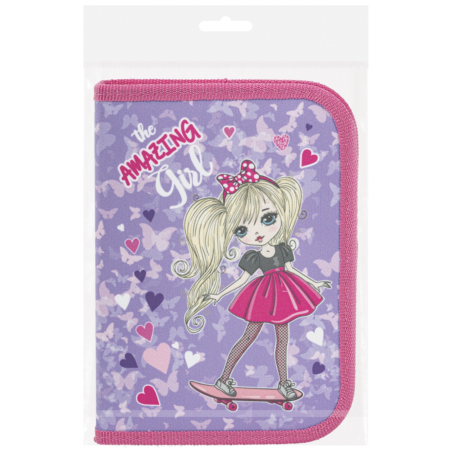 Пенал ПИФАГОР, 1 отделение 1 откидная планка, полиэстер, 19х13 см, "Amazing Girl", 271518