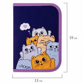 Пенал ПИФАГОР, 1 отделение, 1 откидная планка, полиэстер, 19х13 см, "Cats greetings", 272291