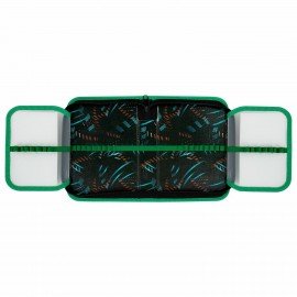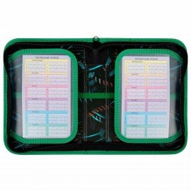 Внутри пенала на каждой створке прочные резинки для канцелярских принадлежностей, также пенал оснащен 2 откидными планками с органайзером и прозрачным кармашком для расписания уроков или таблицы умножения. Шаблон расписания уроков идет в подарок! Внутренняя часть выполнена из картона с глянцевой ламинацией с узором.