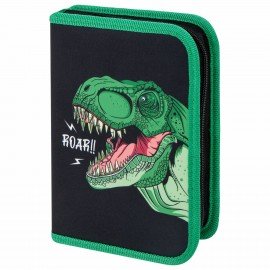 Пенал ПИФАГОР, 1 отделение, 2 откидные планки, полиэстер, 20х14 см, "Dino roar", 272290