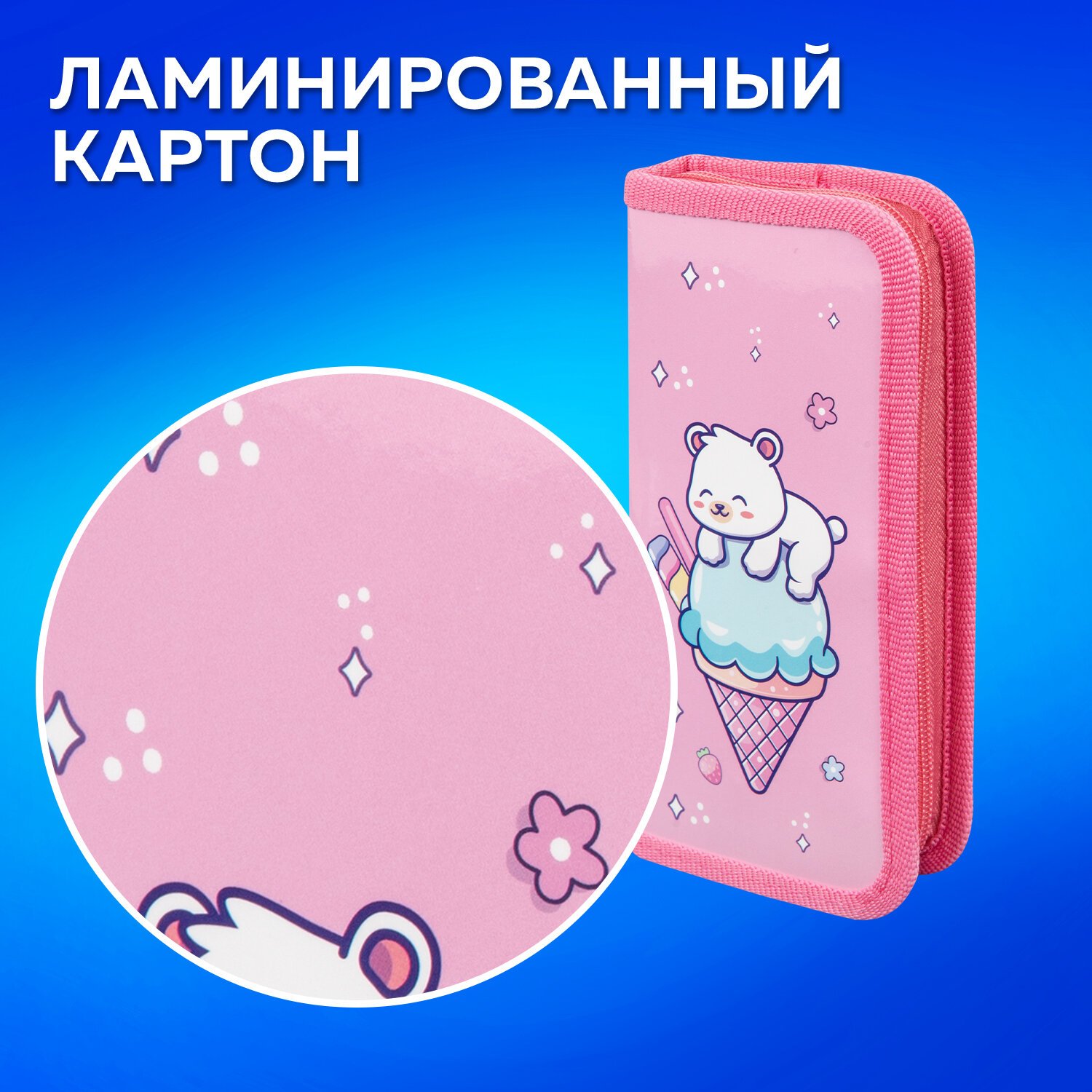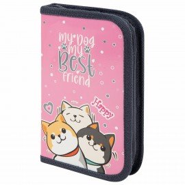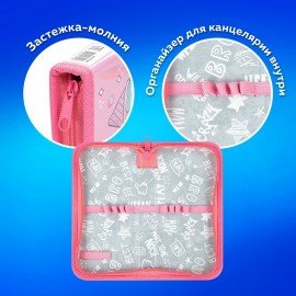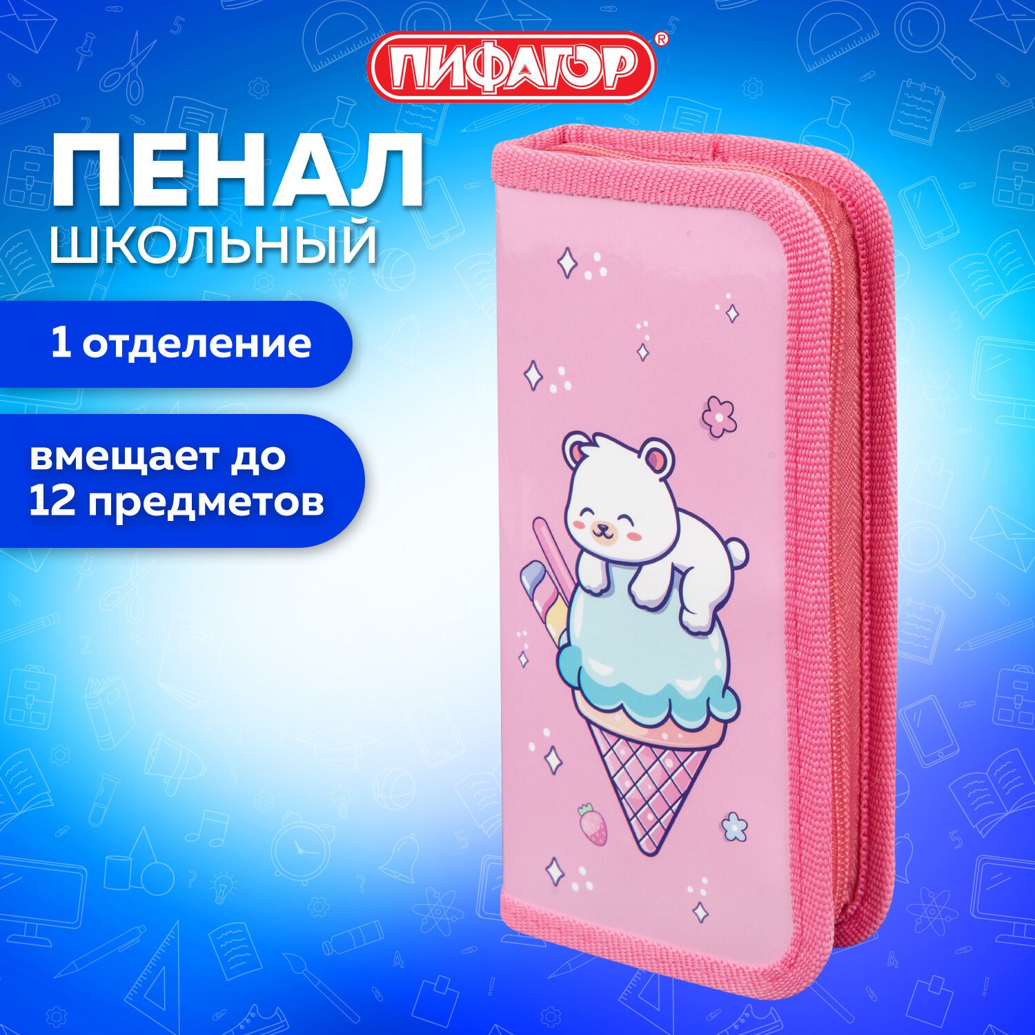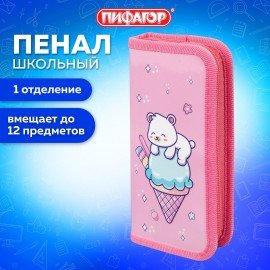 Пенал ПИФАГОР из ламинированного картона. Удобная молния с трех сторон с металлическим бегунком, прочные резинки для предметов.
