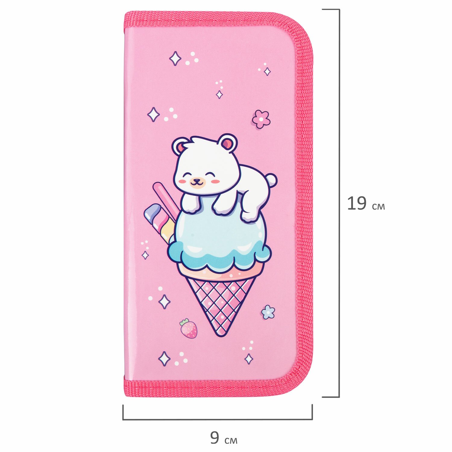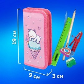 Пенал имеет размер 19х9 см, что позволяет легко размещать его в ранце или рюкзаке, сумке.
