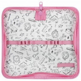 Внутри пенала прочные резинки для канцелярских принадлежностей, внутренняя часть выполнена из картона с глянцевой ламинацией с узором.