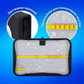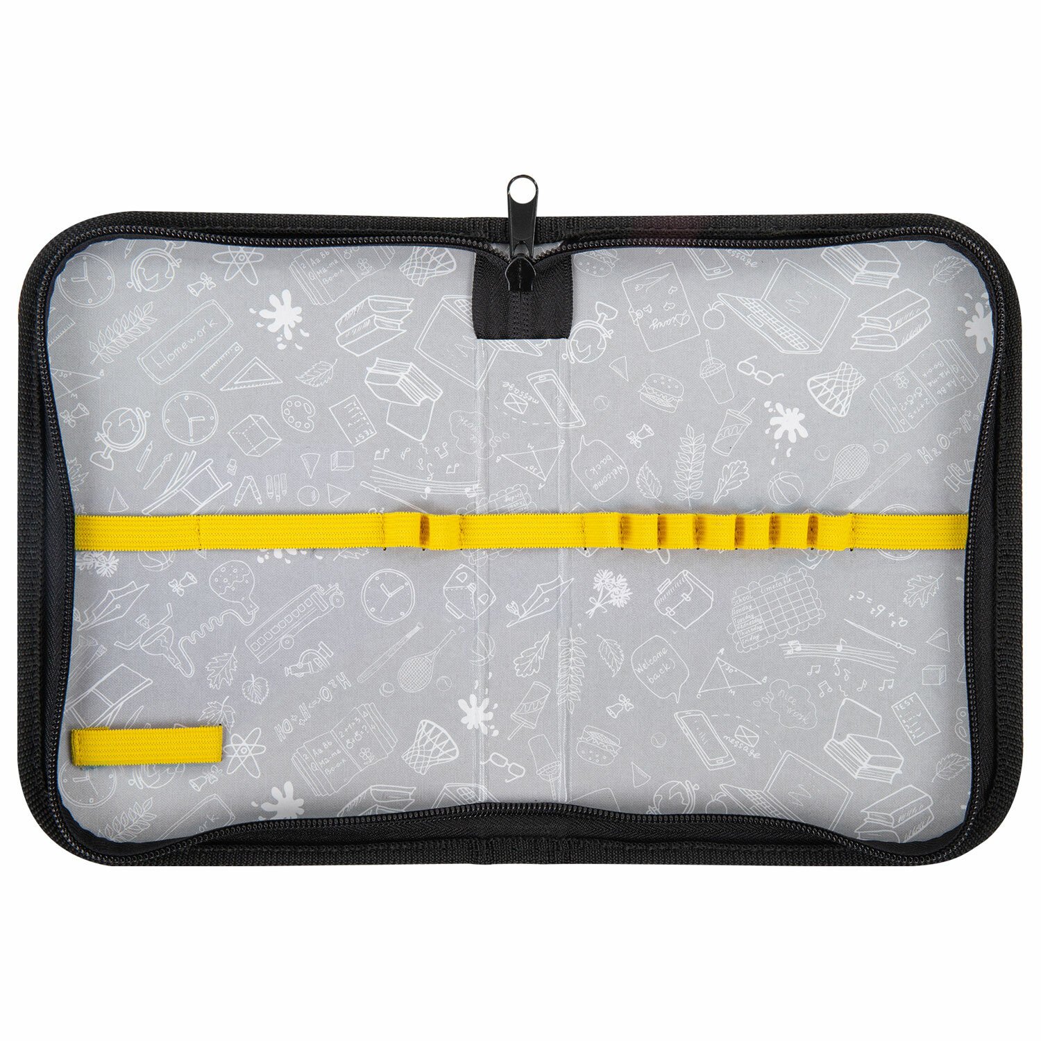 Материал пенала - полиэстер с цветной печатью и ярким дизайном. Основа пенала - плотный картон, обшитый тканью по краям. Такая конструкция отличается износостойкостью и прочностью, поможет защитить канцелярские принадлежности от повреждений. Внутри пенала на каждой створке прочные резинки для канцелярских принадлежностей, внутренняя часть выполнена из картона с глянцевой ламинацией. Пенал имеет стандартный размер 19х13 см, что позволяет легко размещать его в ранце или рюкзаке, сумке. Хорошая наполняемость пенала, до 14 предметов, дает возможность держать все необходимые для уроков канцтовары в порядке в одном месте.