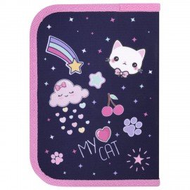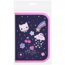 Пенал ЮНЛАНДИЯ, 1 отделение, металлизированный картон, конгрев, 19х11 см, "Meow", 271103