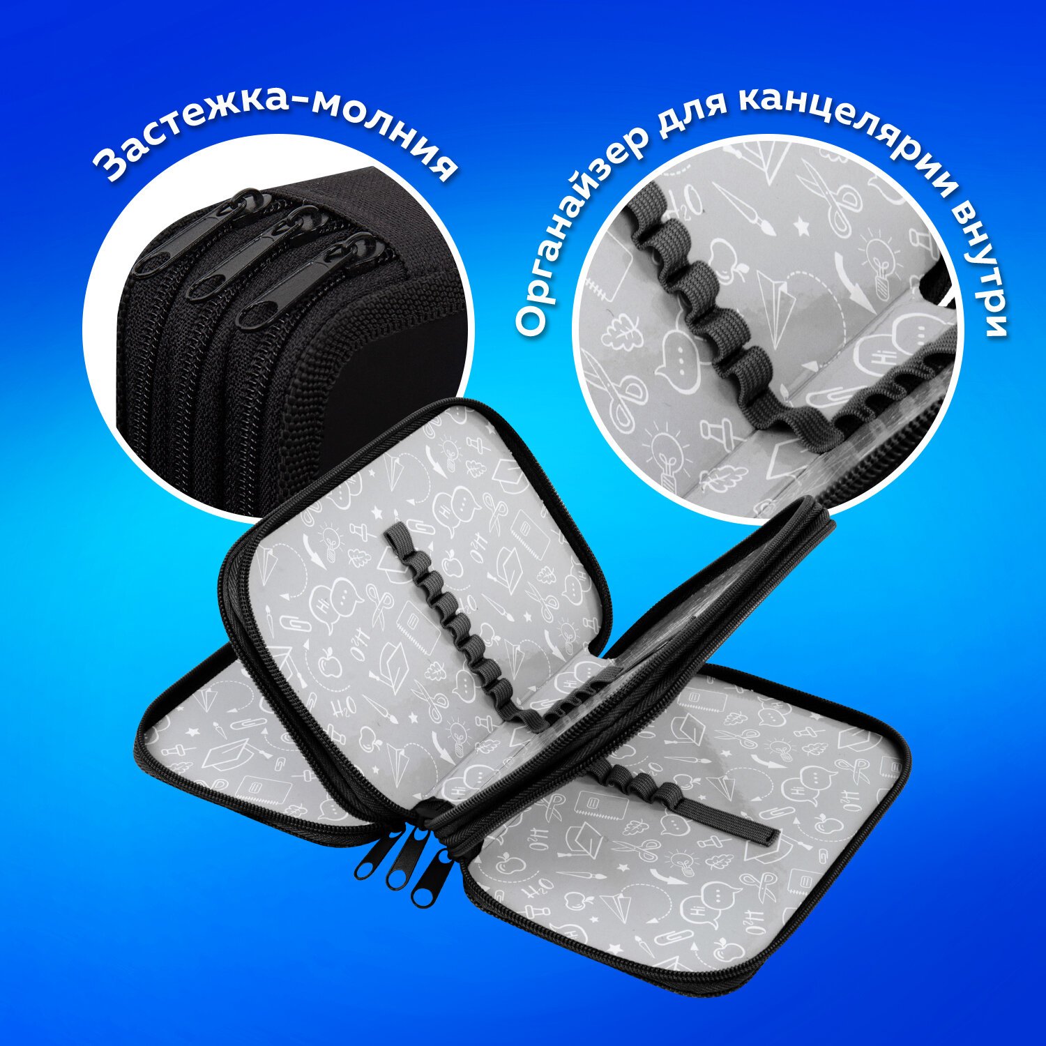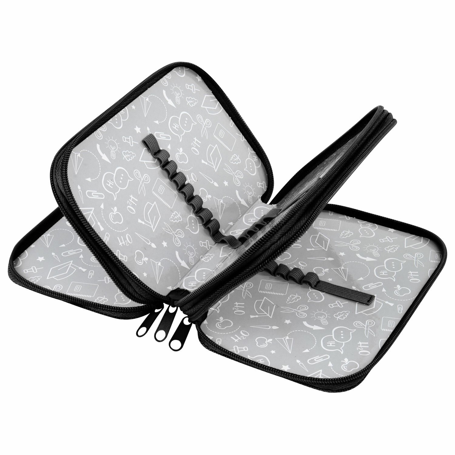 Пенал ПИФАГОР яркого дизайна с тремя отделениями выполнен из ламинированного картона, имеет тканевый торец. Удобные молнии с металлическим бегунком с трех сторон, прочные резинки для предметов. Вмещает до 42 предметов.