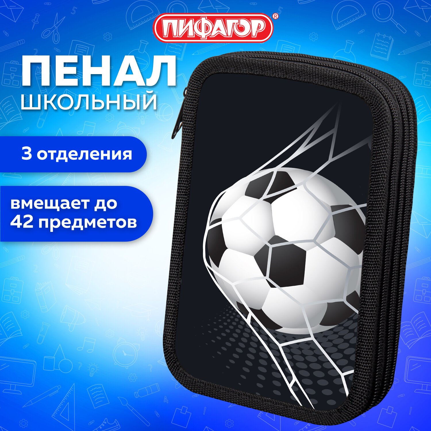Пенал ПИФАГОР, 3 отделения, ламинированный картон, 19х11 см, "Ball kick", 272253
