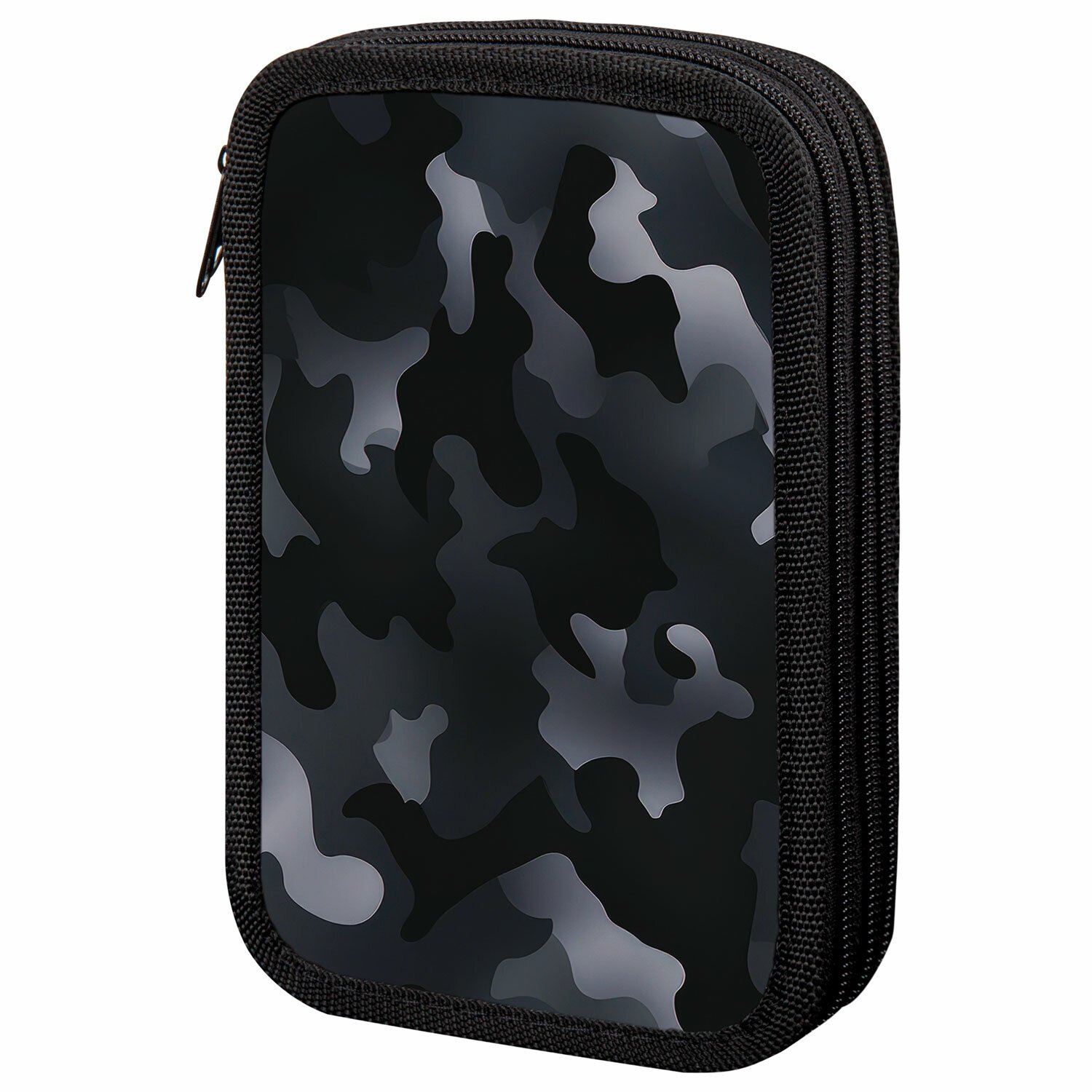 Пенал ПИФАГОР, 3 отделения, ламинированный картон, 19х11 см, Black camo, 273489
