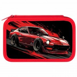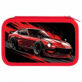 Пенал ЮНЛАНДИЯ, 3 отделения, картон с эффектом soft-touch, 19х11 см, "Fire car", 272267