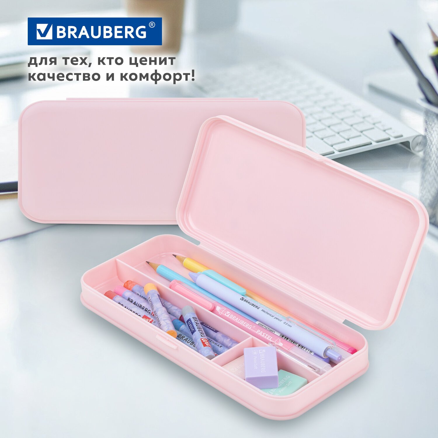 Пенал пластиковый BRAUBERG, 1 отделение, на кнопке, 20x7 см, ассорти, Pastel, 273770