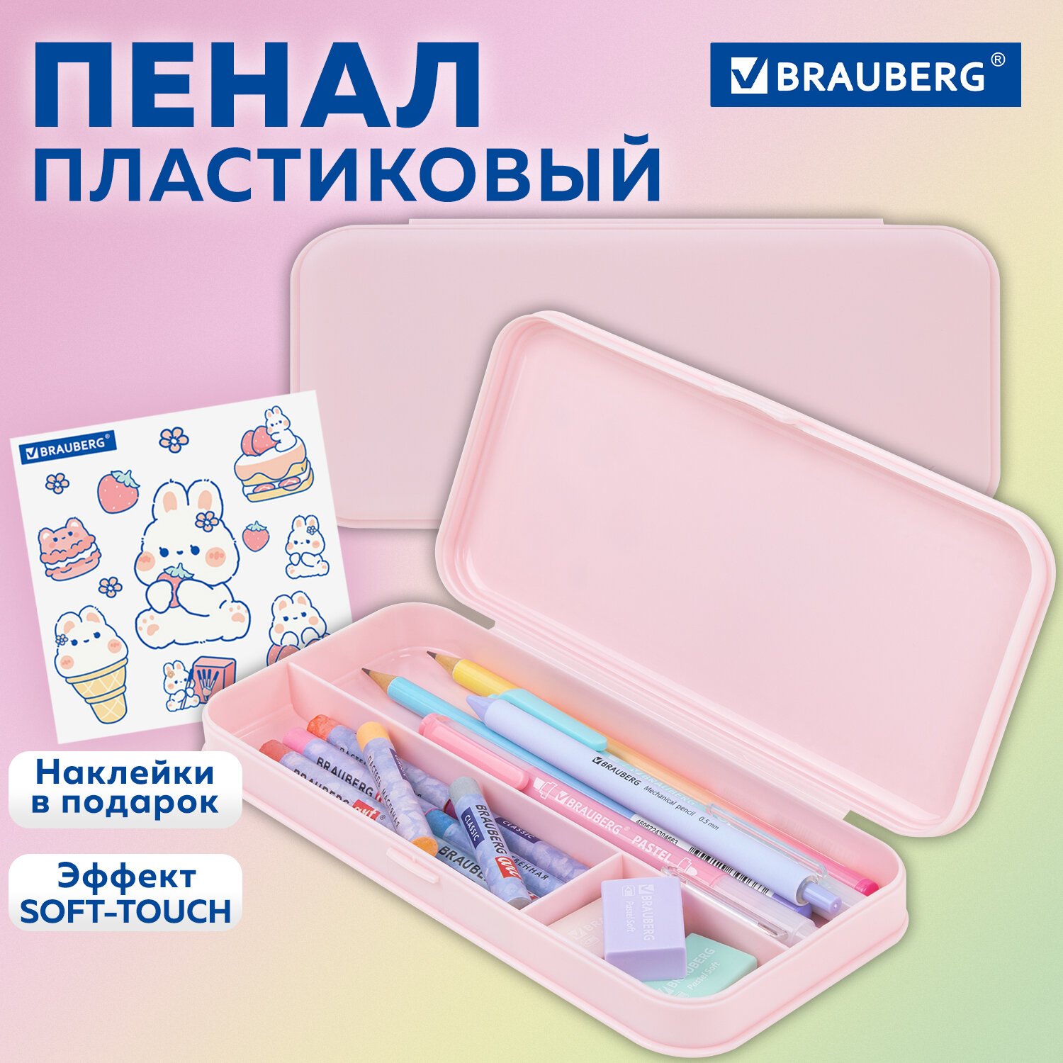Пластиковый пенал BRAUBERG предназначен для школьников и художников. Вместительный, прочный, с удобным разделением для организации принадлежностей. Набор ярких наклеек в подарок!