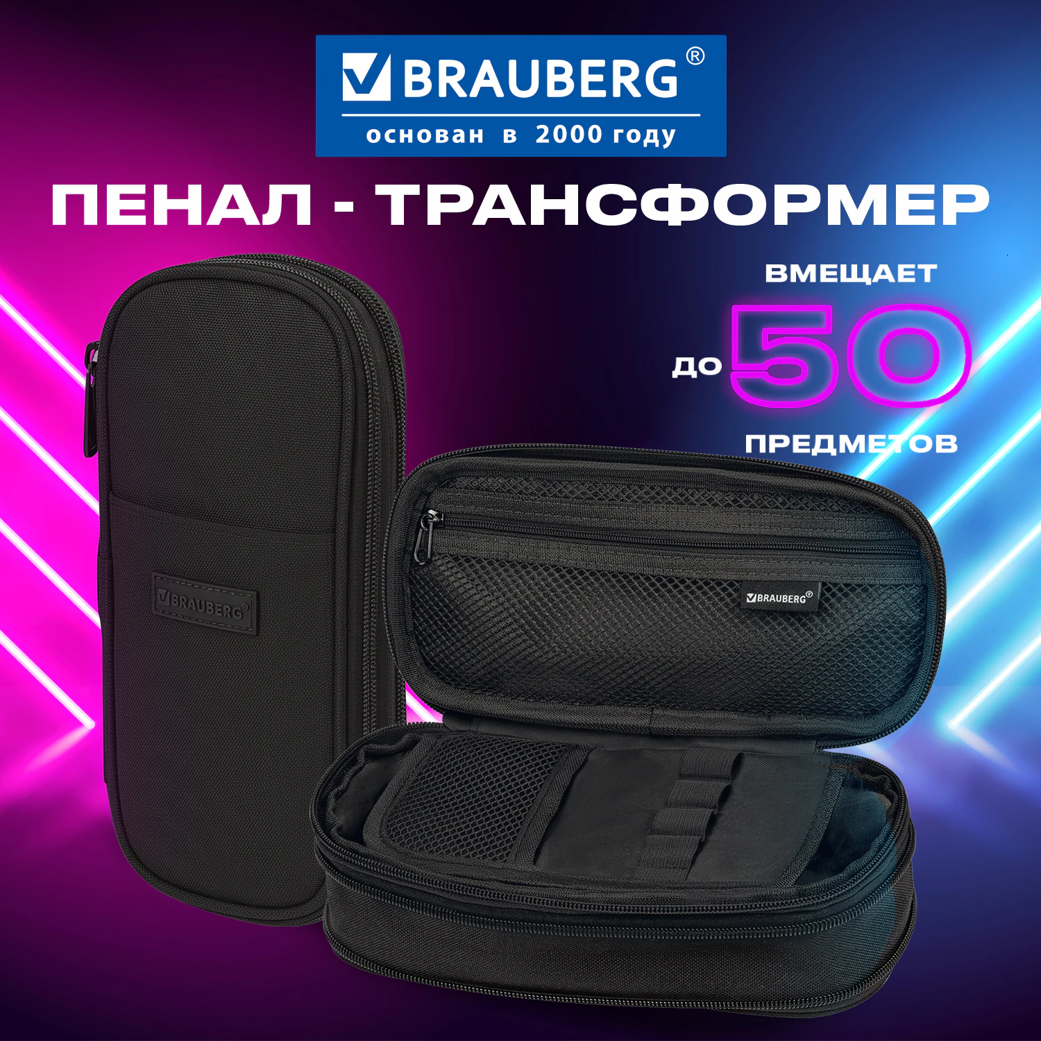 Пенал-трансформер BRAUBERG, полиэстер, 22х10х3 см, "Black", 274609