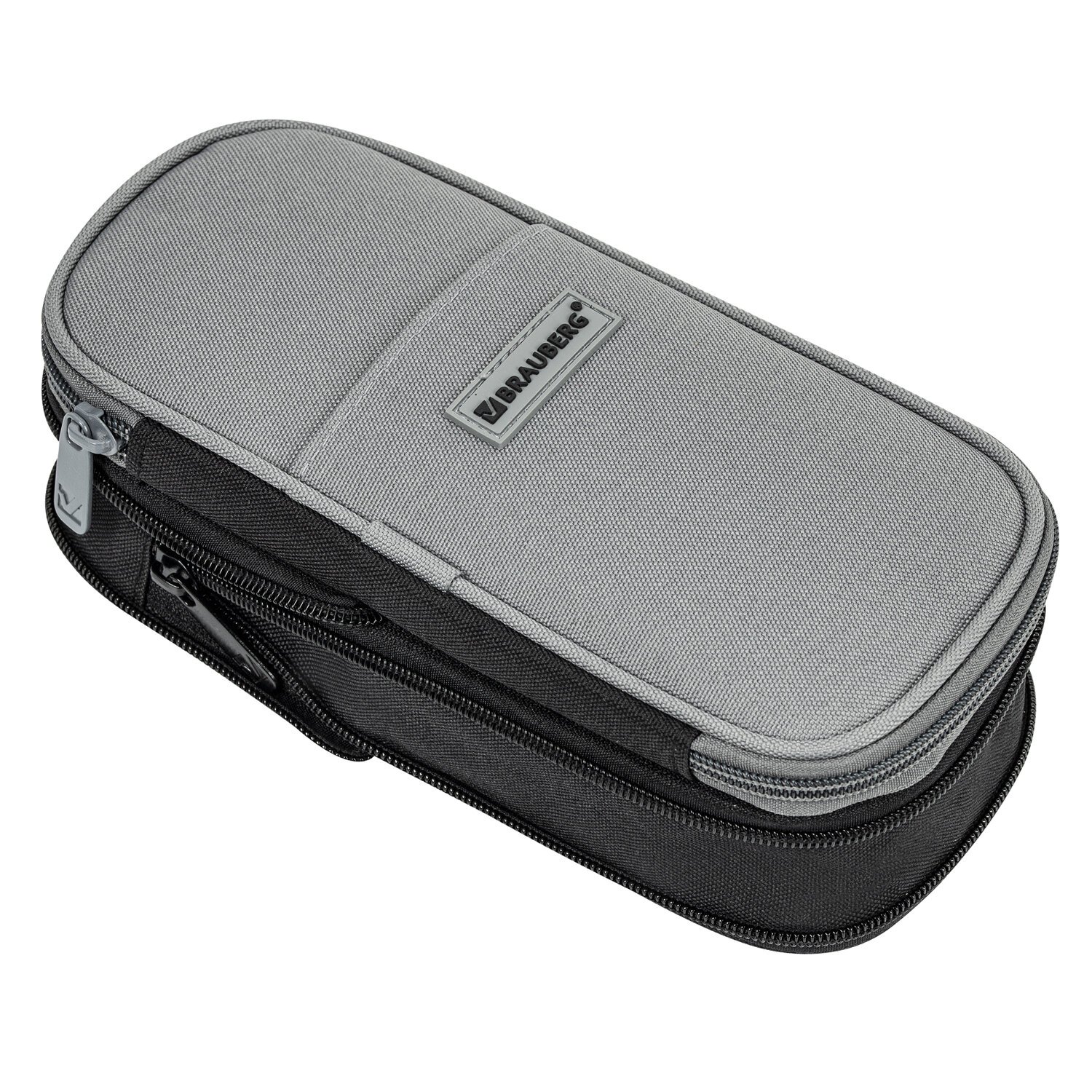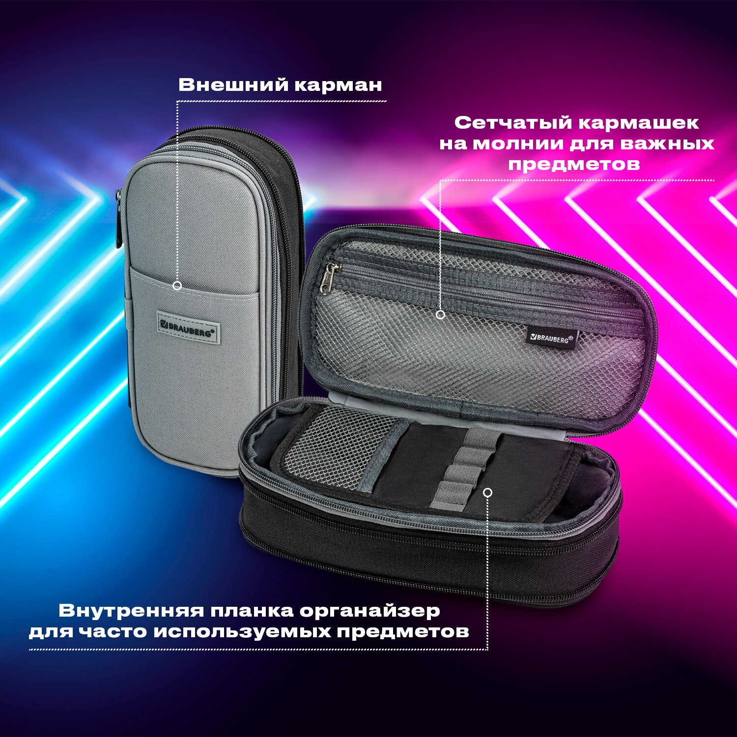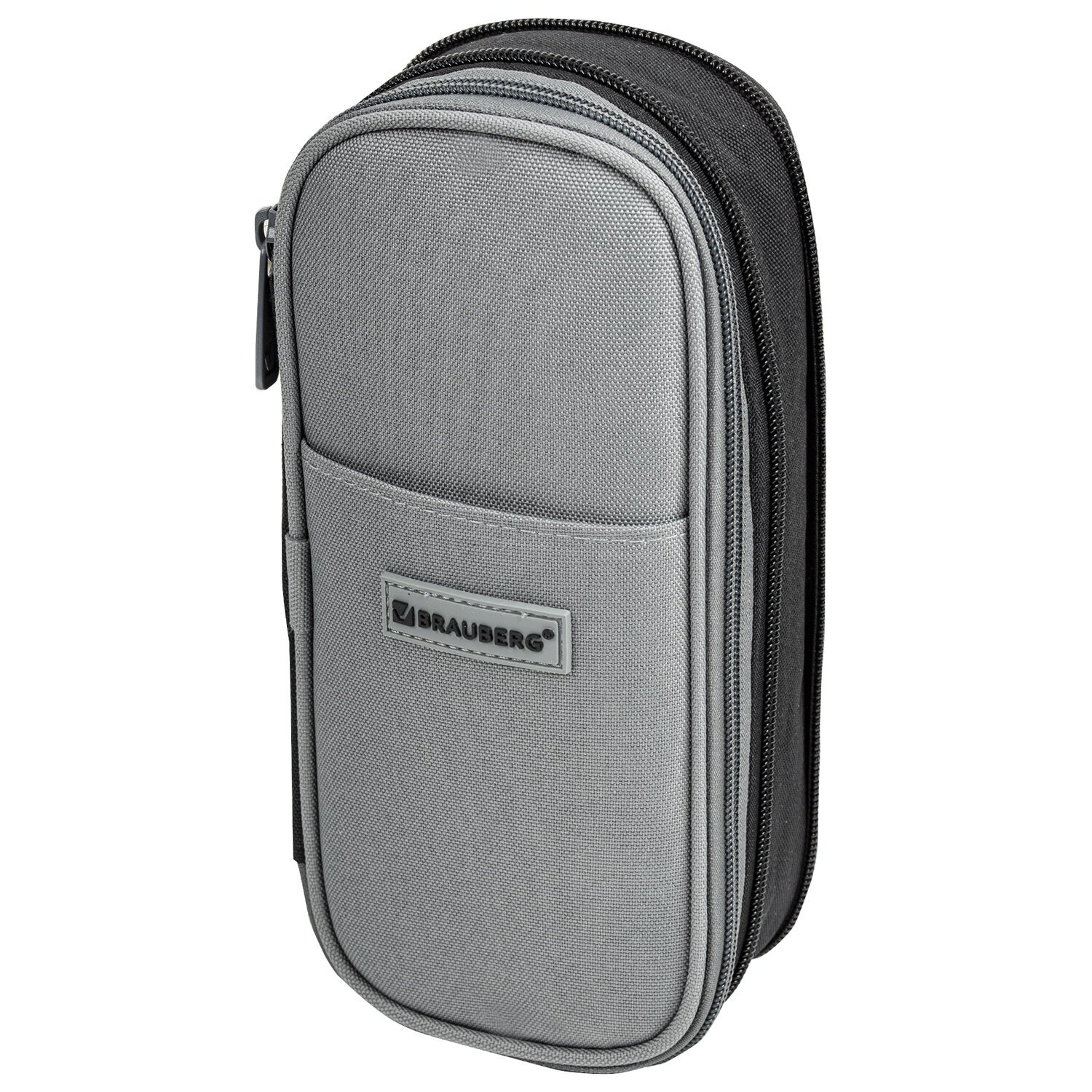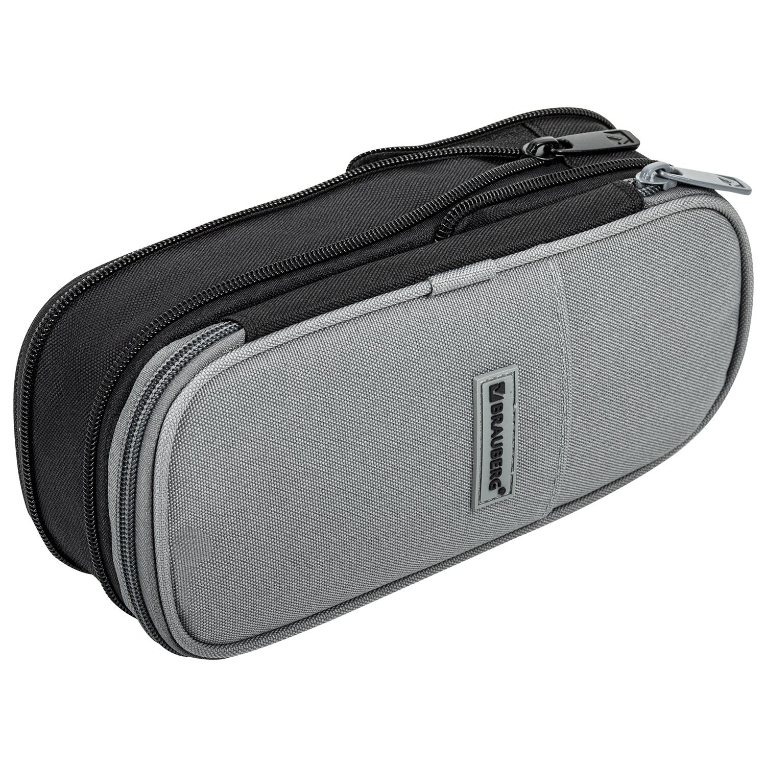 Пенал-трансформер BRAUBERG "Charcoal gray" вместительного размера 22х10 см, с возможностью трансформировать объем с 3 см до 6,5 см при помощи двойной застежки-молнии снаружи.