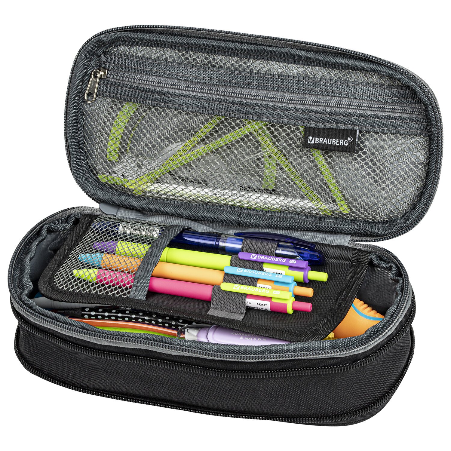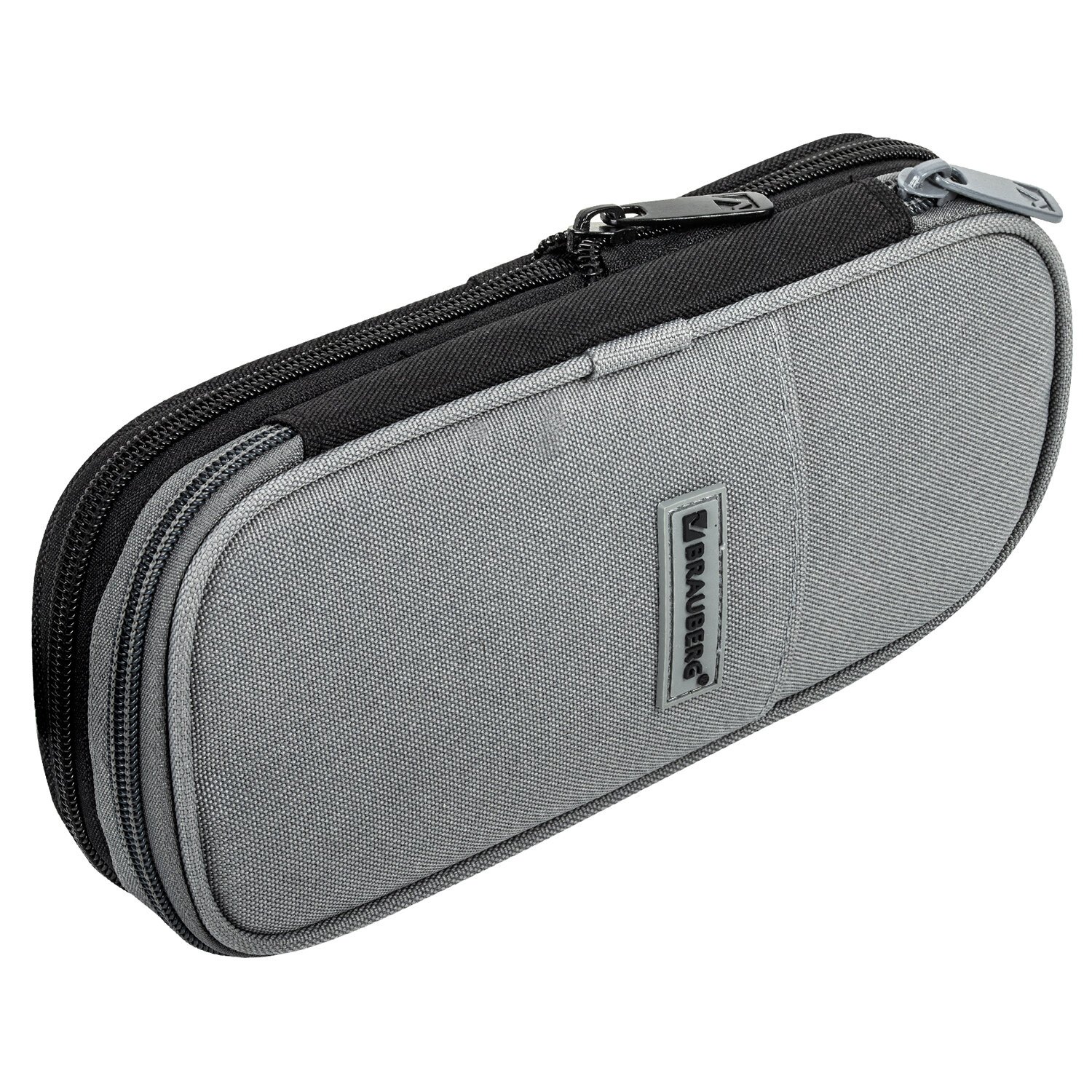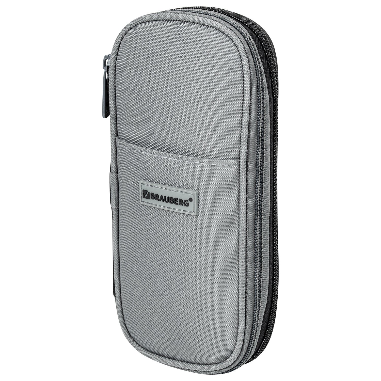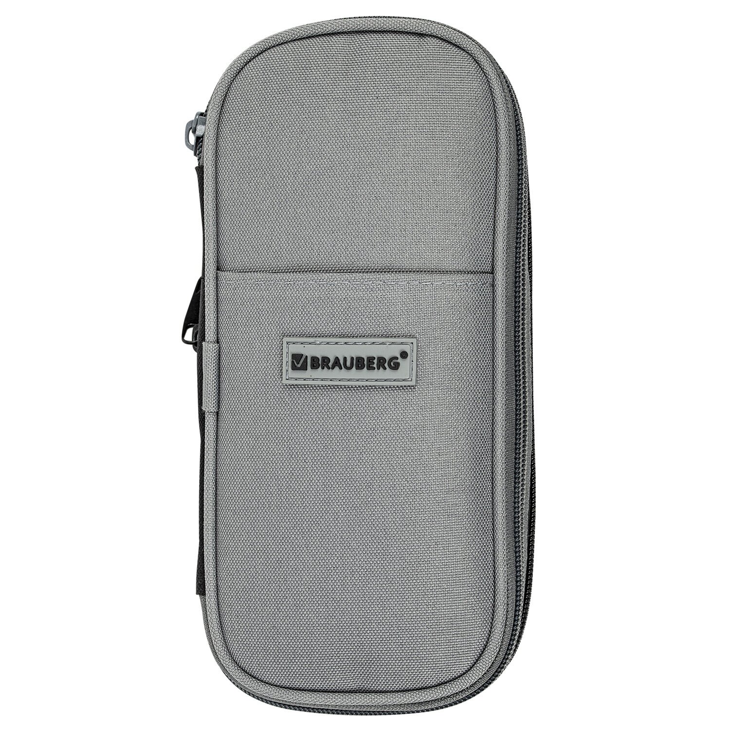 Пенал-трансформер BRAUBERG "Charcoal gray" вместительного размера 22х10 см, с возможностью трансформировать объем с 3 см до 6,5 см при помощи двойной застежки-молнии снаружи.