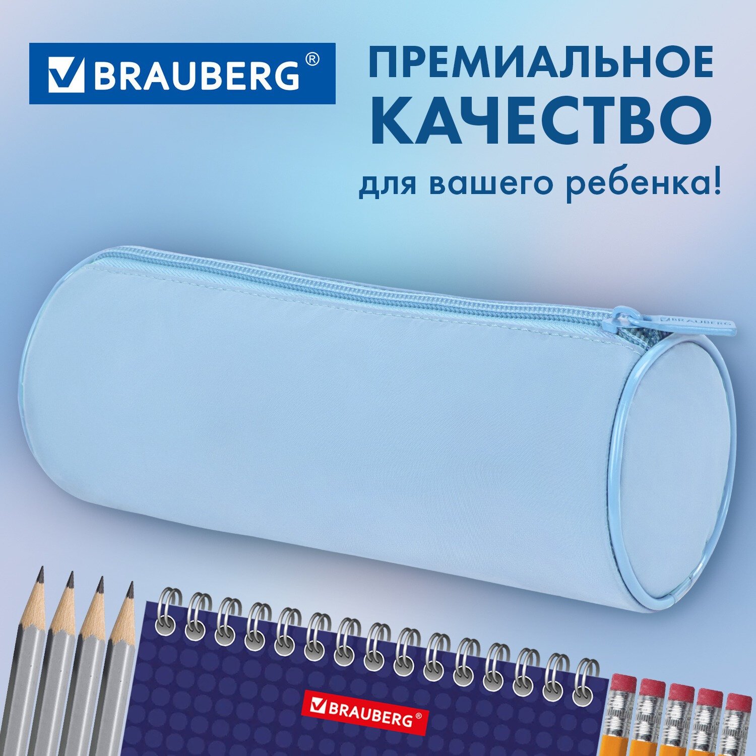 Пенал-тубус BRAUBERG, с эффектом Soft Touch, мягкий, пастельно-голубой, 22х8 см, 272300