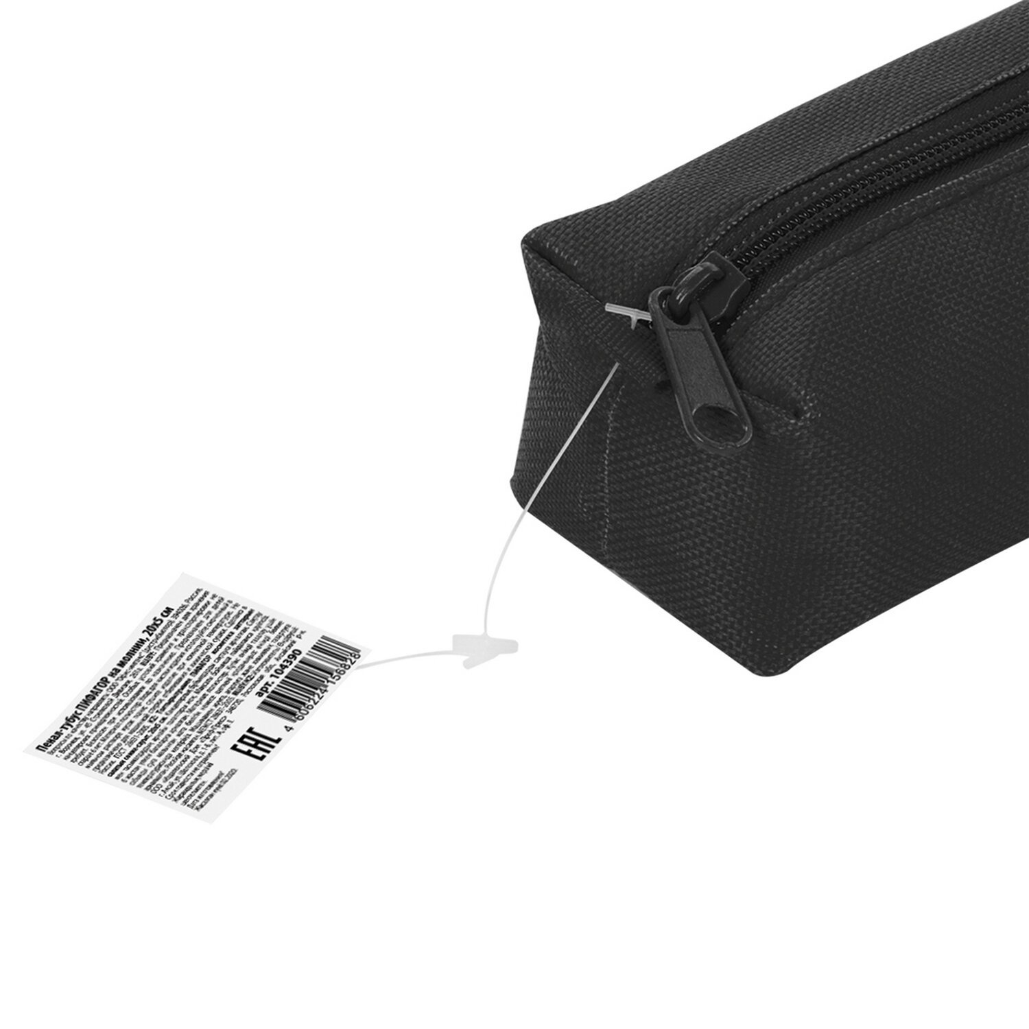Пенал-тубус ПИФАГОР на молнии, текстиль, черный, 20х5 см, 104390