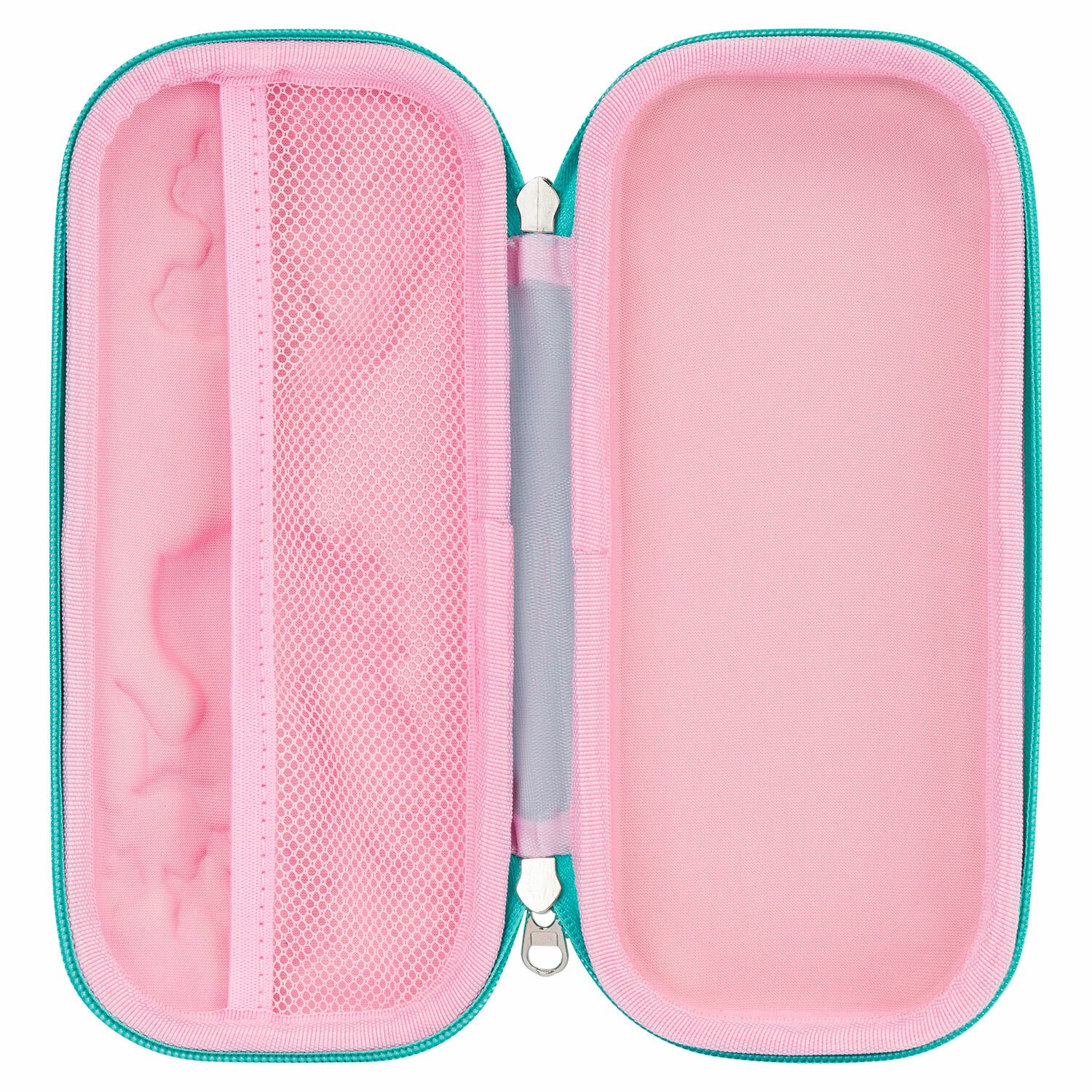 Пенал прямоугольной формы с одним вместительным отделением. Внутри карман из сеточки. Вмещает до 50 канцелярских предметов стандартного размера. Пенал оснащен молнией с двумя металлическими бегунками
