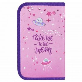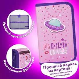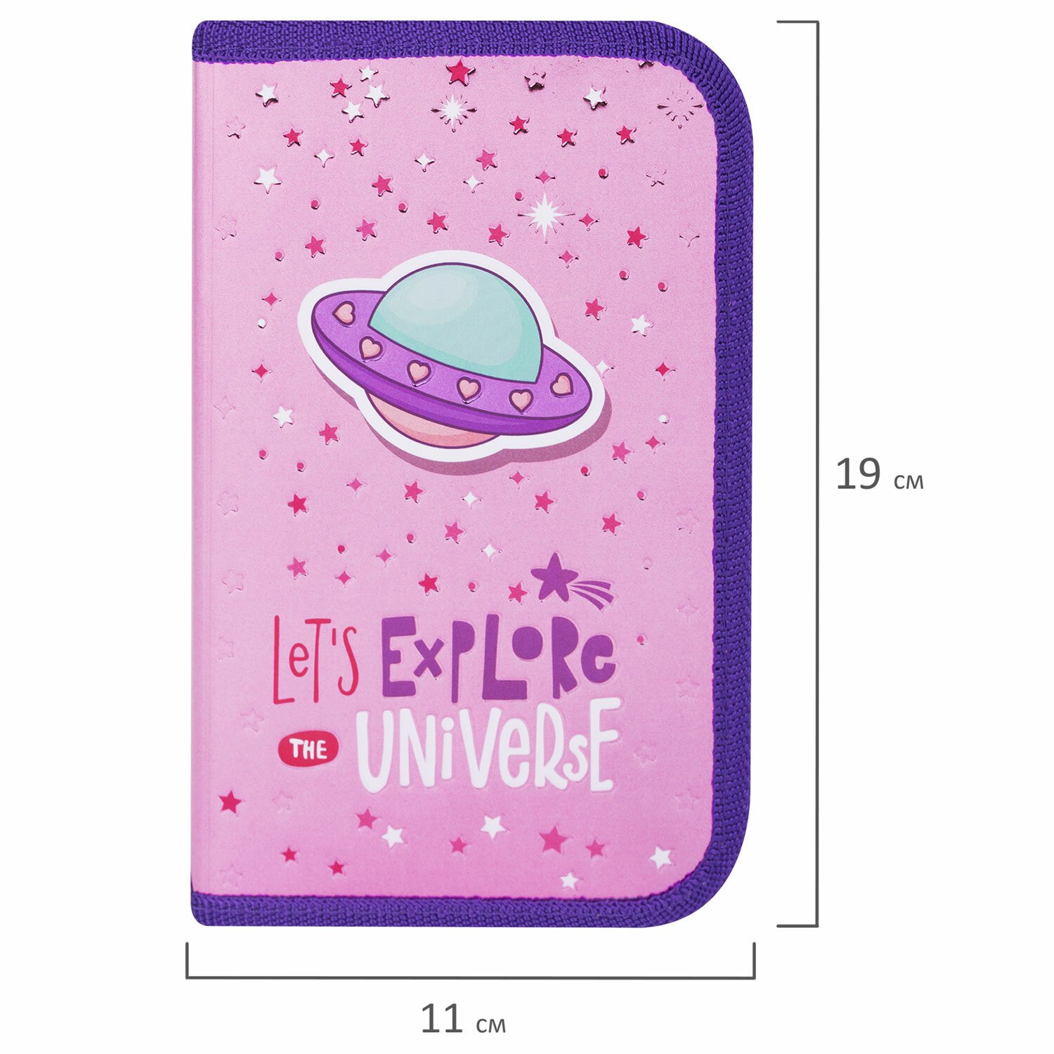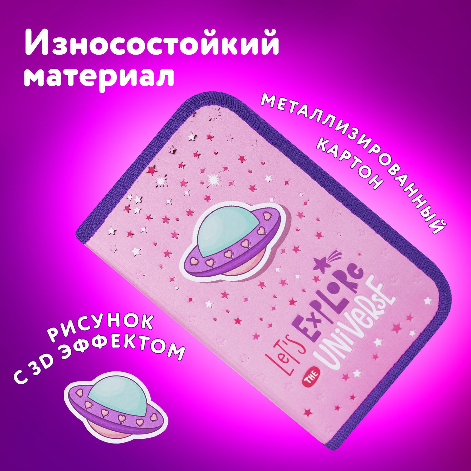 Пенал ЮНЛАНДИЯ, 1 отделение, металлизированный картон, конгрев, 19х11 см, "Moon Explorer", 271507