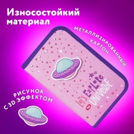 Материал пенала - металлизированный картон с цветной объемной 3D-печатью и ярким дизайном. Основа пенала - плотный картон, обшитый тканью по краям. Такая конструкция отличается износостойкостью и прочностью, поможет защитить канцелярские принадлежности от повреждений.