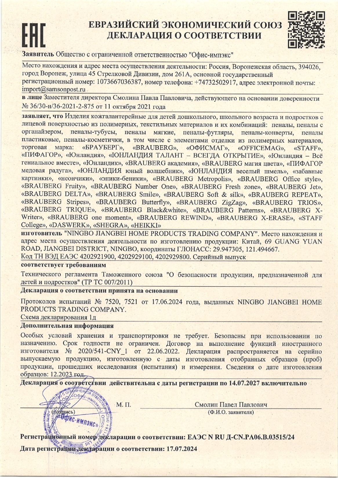 Пенал ЮНЛАНДИЯ предназначен для хранения школьных канцелярских принадлежностей. Застегивается на