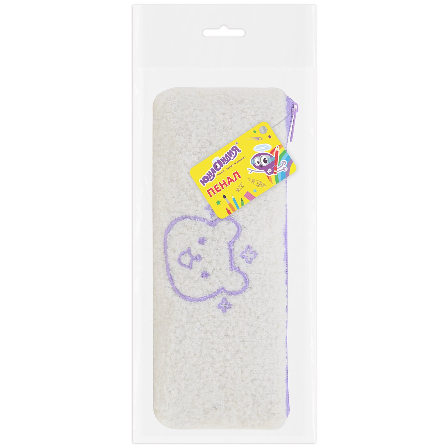 Пенал ЮНЛАНДИЯ, 1 отделение, плюш, "Smiley face", белый, 22х8x3 см, 272269