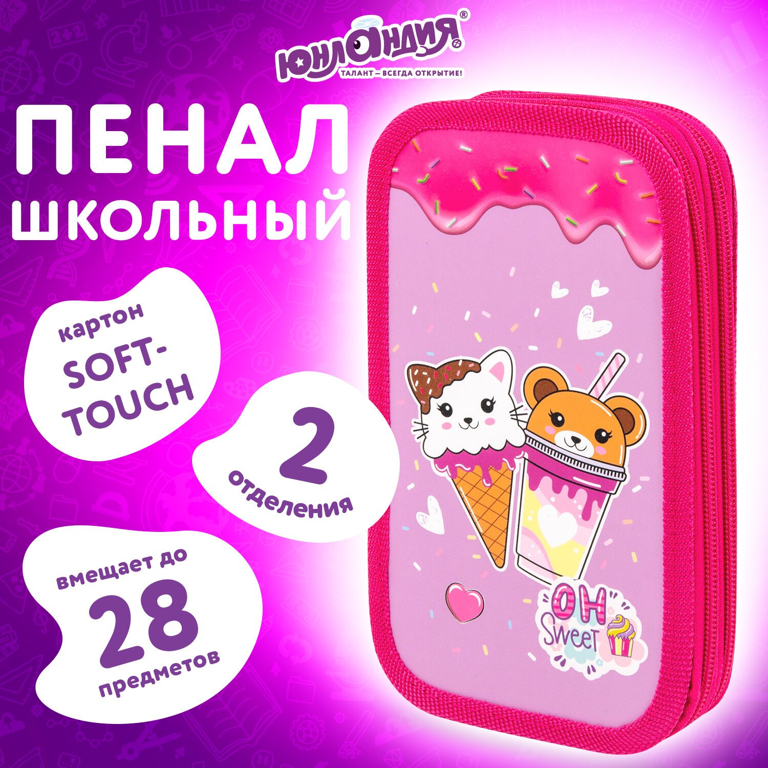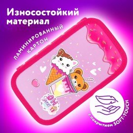 Пенал ЮНЛАНДИЯ, 2 отделения, картон с эффектом soft-touch, 19х11 см, "Candy friends", 272263