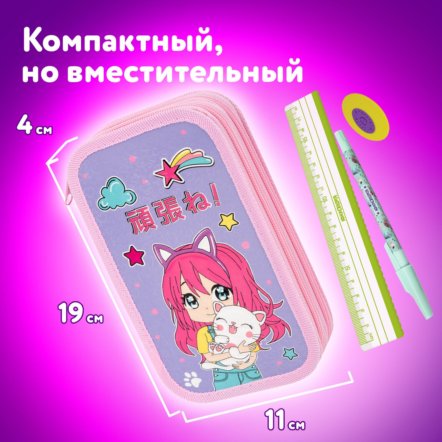 Пенал ЮНЛАНДИЯ, 2 отделения, ламинированный картон, конгрев, 19х11 см, "Anime hugs", 272293