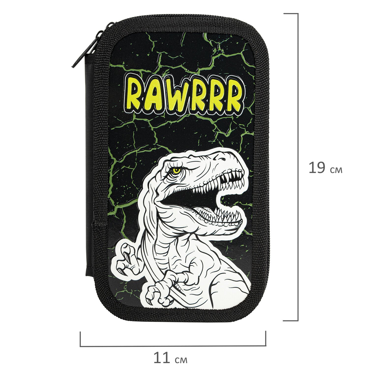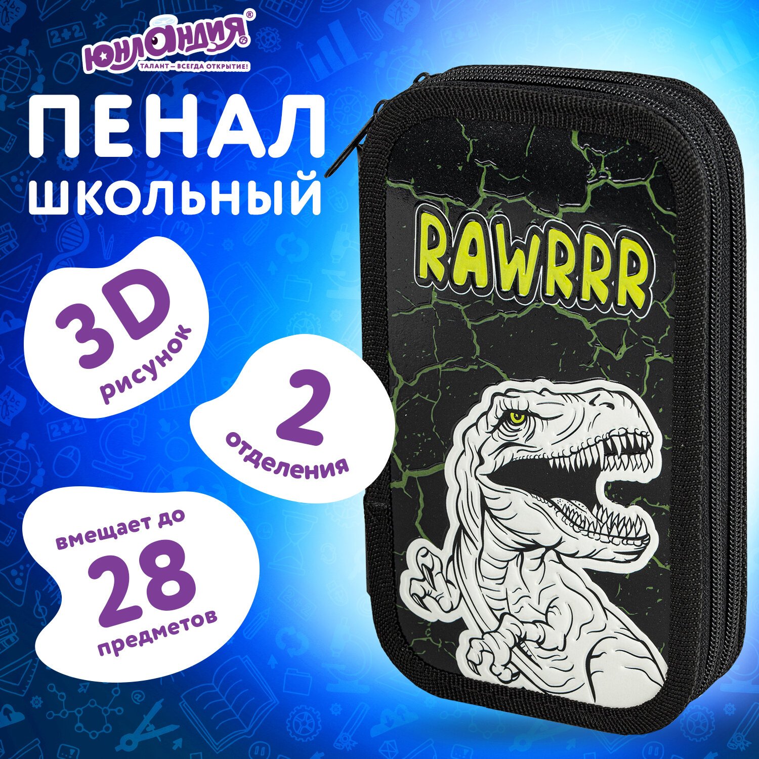 Пенал ЮНЛАНДИЯ, 2 отделения, ламинированный картон, конгрев, 19х11 см, "RAWR", 271538