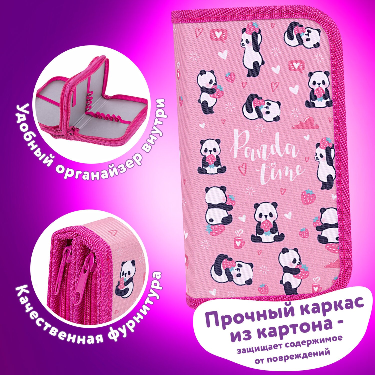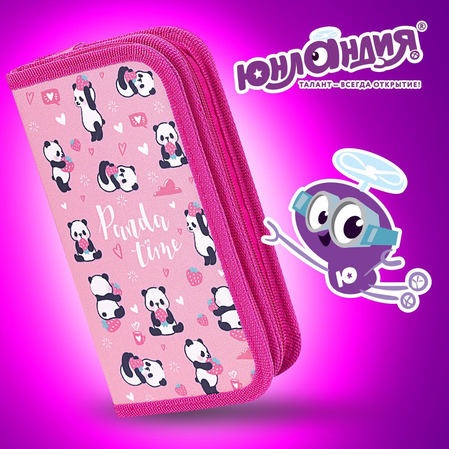 Пенал ЮНЛАНДИЯ, 2 отделения, полиэстер, 19х11 см, "Pandamania", 271540