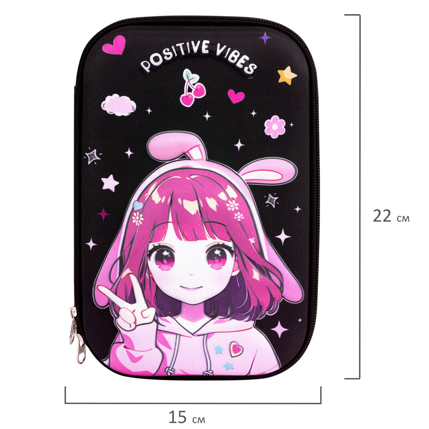 Пенал ЮНЛАНДИЯ большой, 1 отделение, 1 откидная планка, карман, полиэстер/EVA, 22х15х5 см, Anime sign, 273194