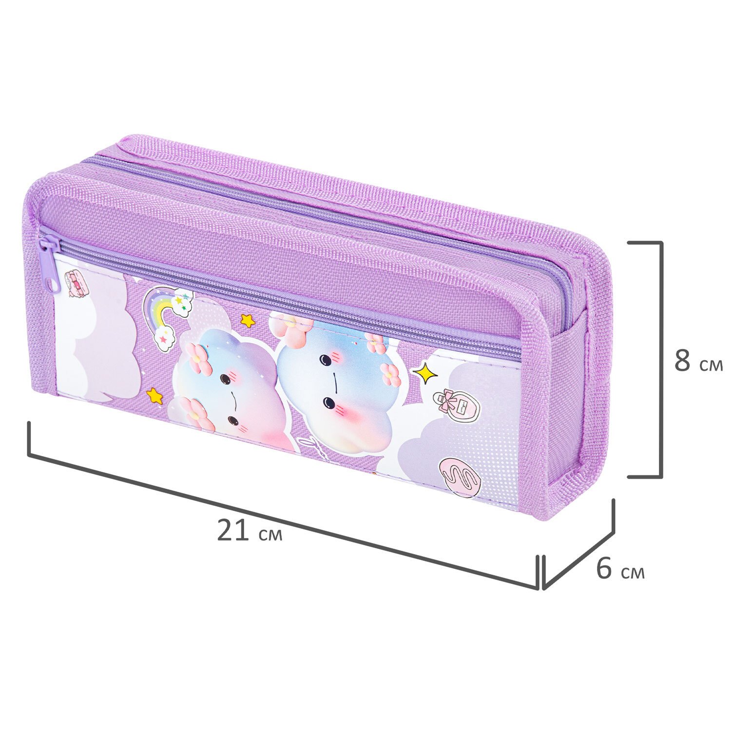 Пенал мягкий BRAUBERG PASTEL, 2 отделения, фиолетовый, 21х9,5х5 см, 272278