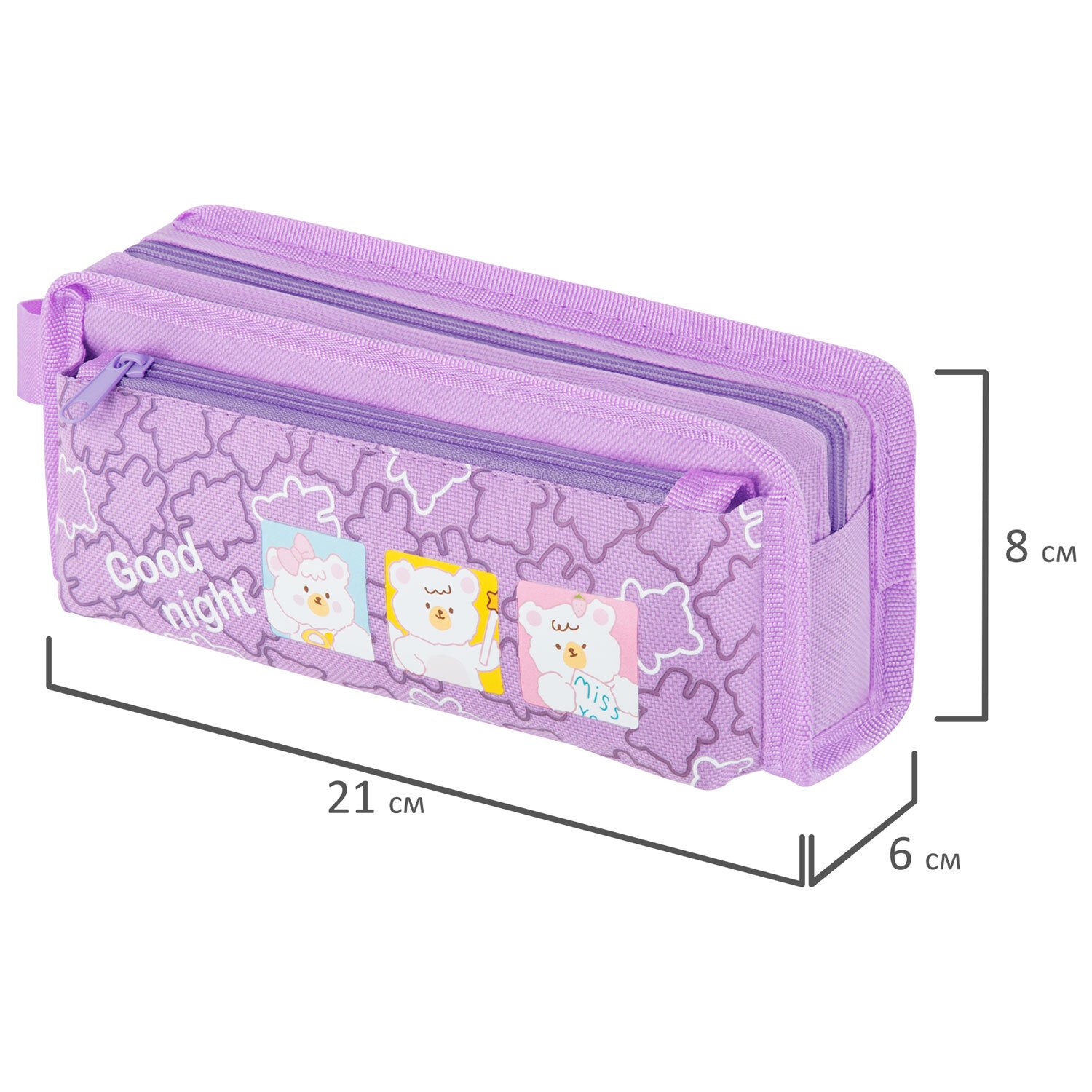 Пенал мягкий BRAUBERG PASTEL, 2 отделения, фиолетовый, 21х9,5х5 см, 272278