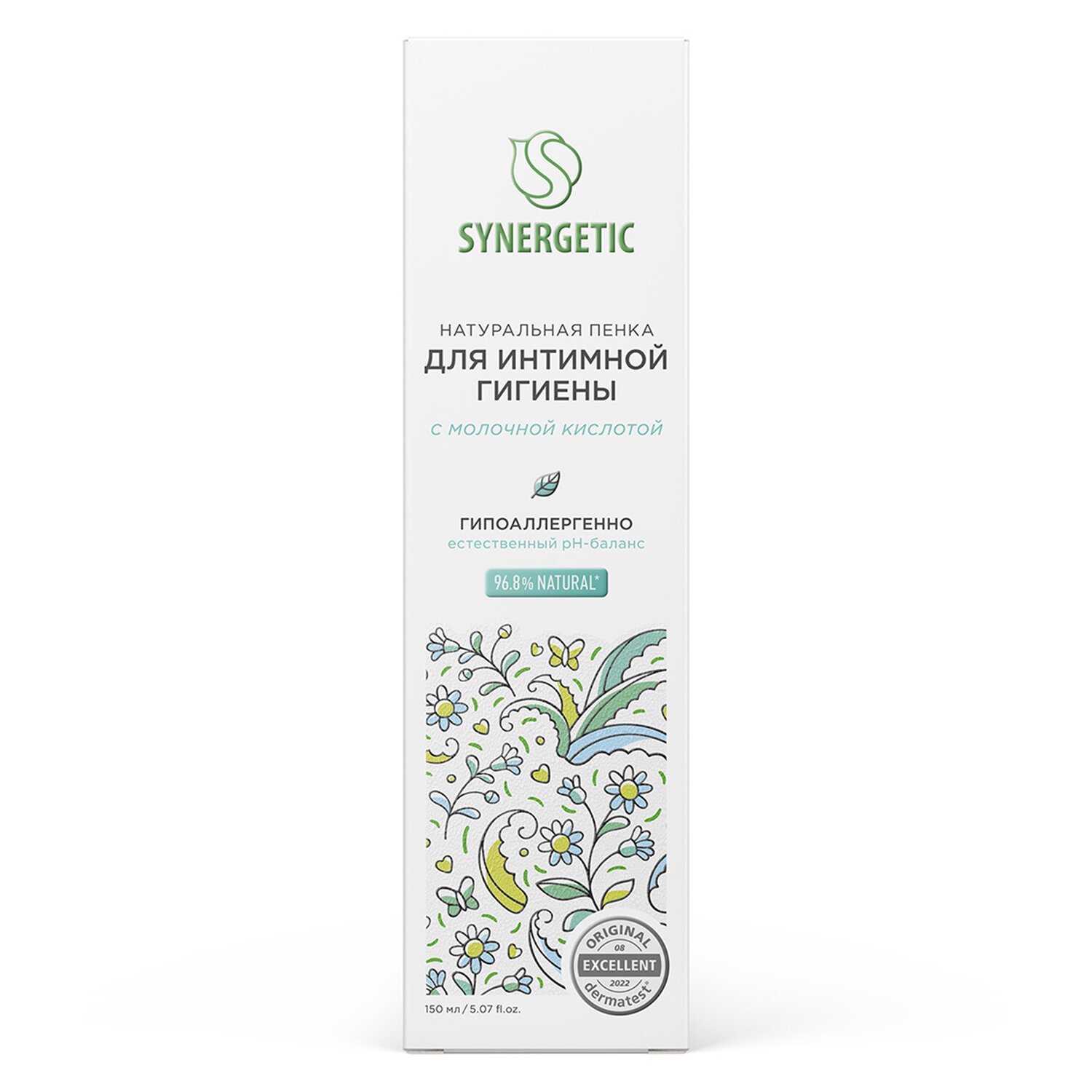 Пенка для интимной гигиены 150 мл SYNERGETIC с молочной кислотой, натуральная, 701804